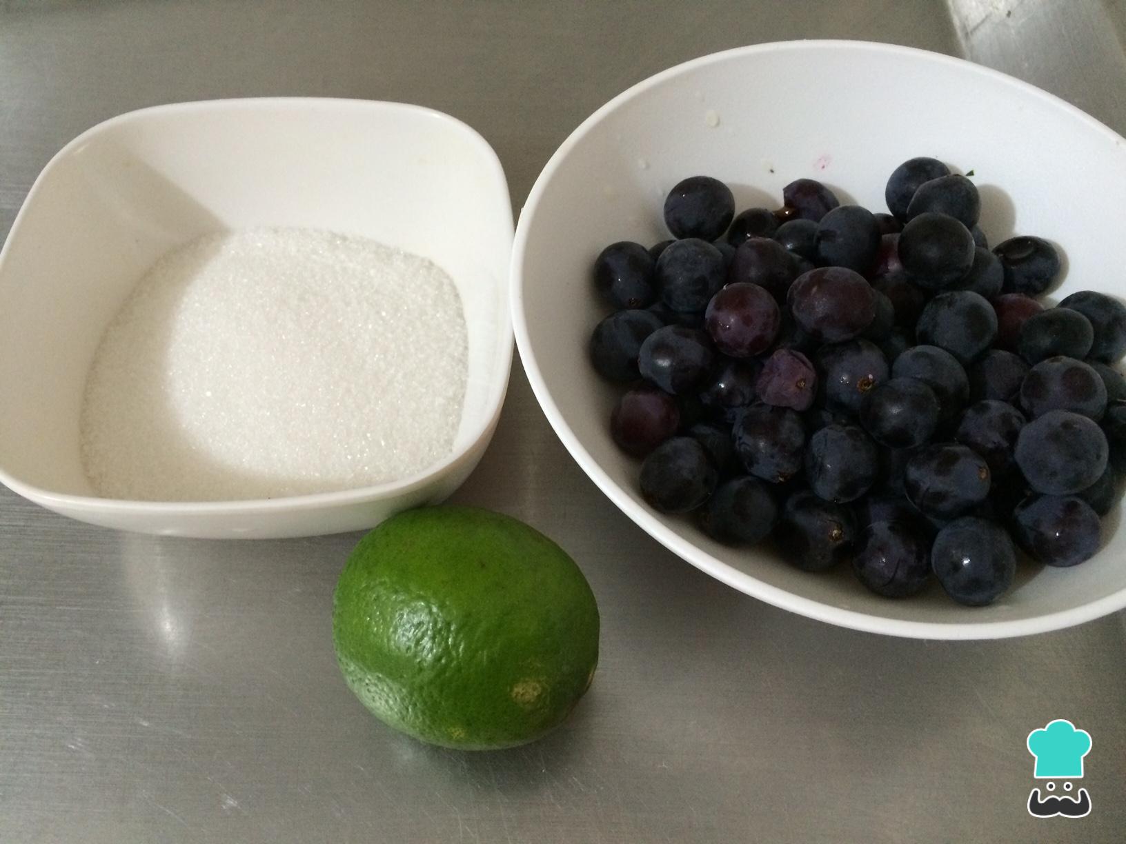 Para fazer esta geleia caseira comece por reunir os ingredientes. Neste caso estou usando uva nacional, também chamada de uva Isabel, mas você pode usar a que preferir.