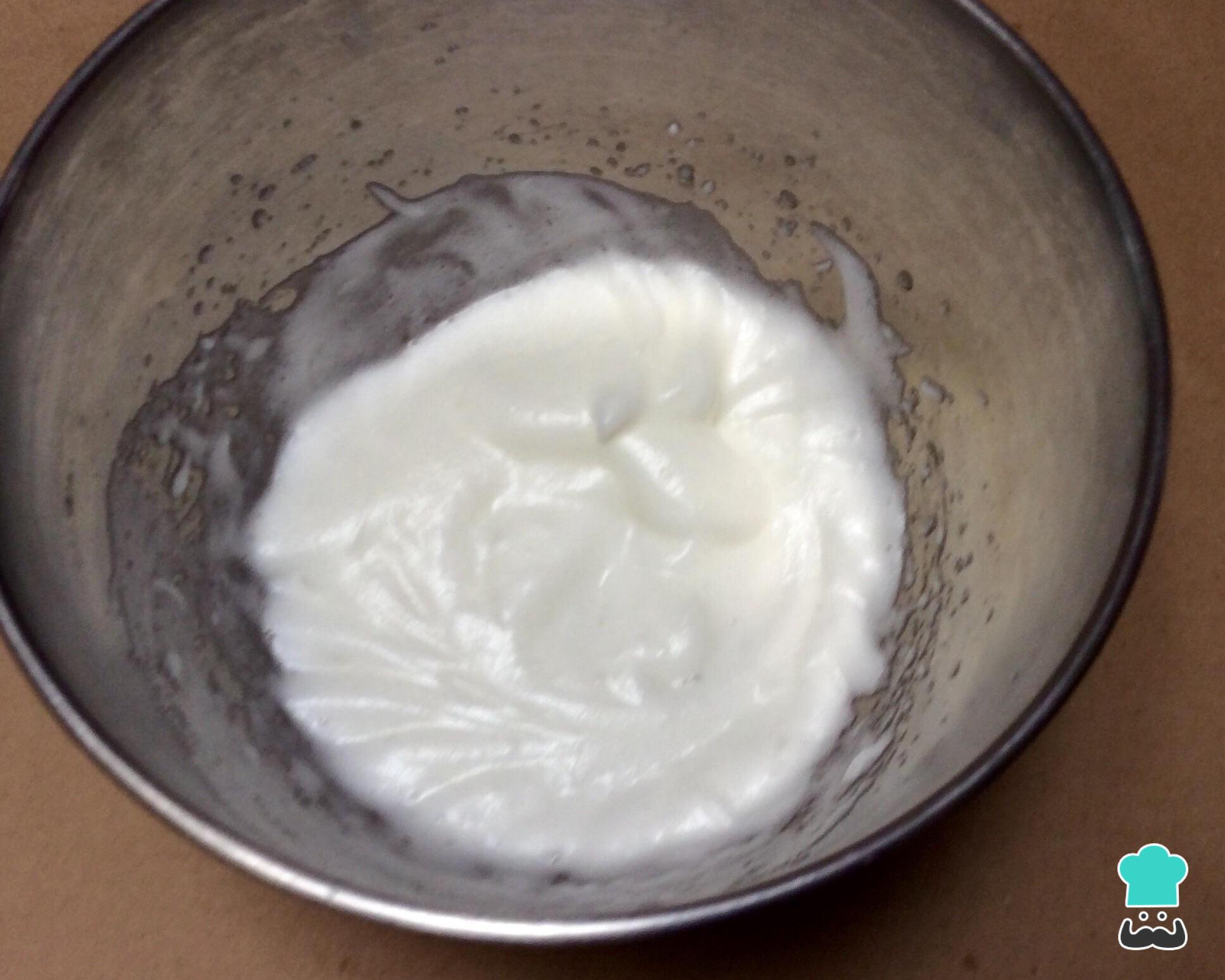 Com a ajuda da batedeira bata as claras por 2-3 minutos ou até ficarem bem firmes, como na foto.