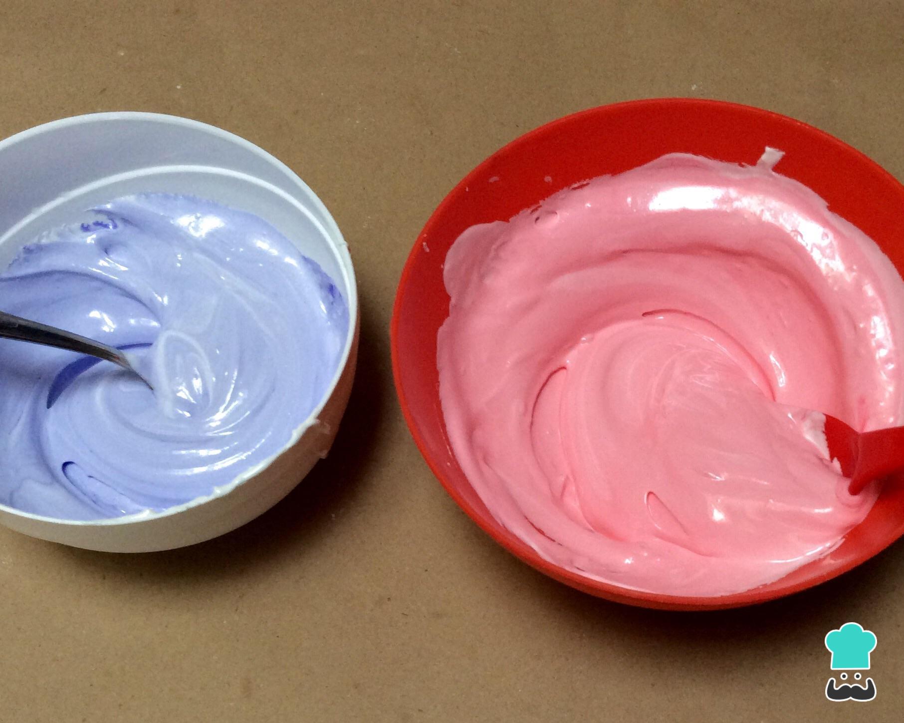 Para conferir cor ao glacê real pingue algumas gotas de corante alimentício e misture muito bem. Se você quiser preparar glacê real colorido de diferentes cores, separe o glacê em dois ou mais recipientes e coloque os corantes respetivos neles.