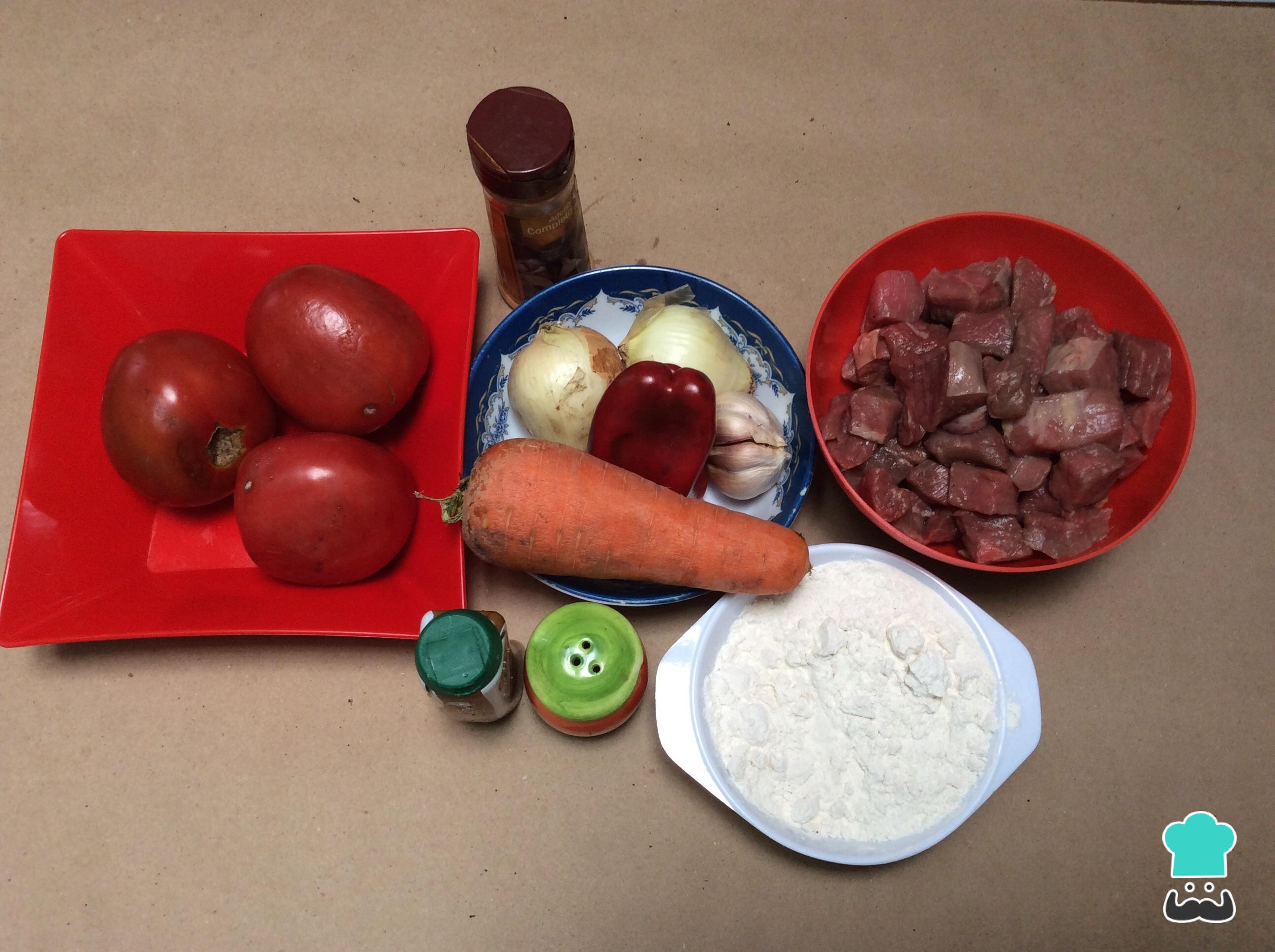 A primeira coisa que você deve fazer para preparar o goulash húngaro é reunir todos os ingredientes. A carne de vitela deverá ser cortada em cubos, se você não gostar desta carne pode usar carne de porco.