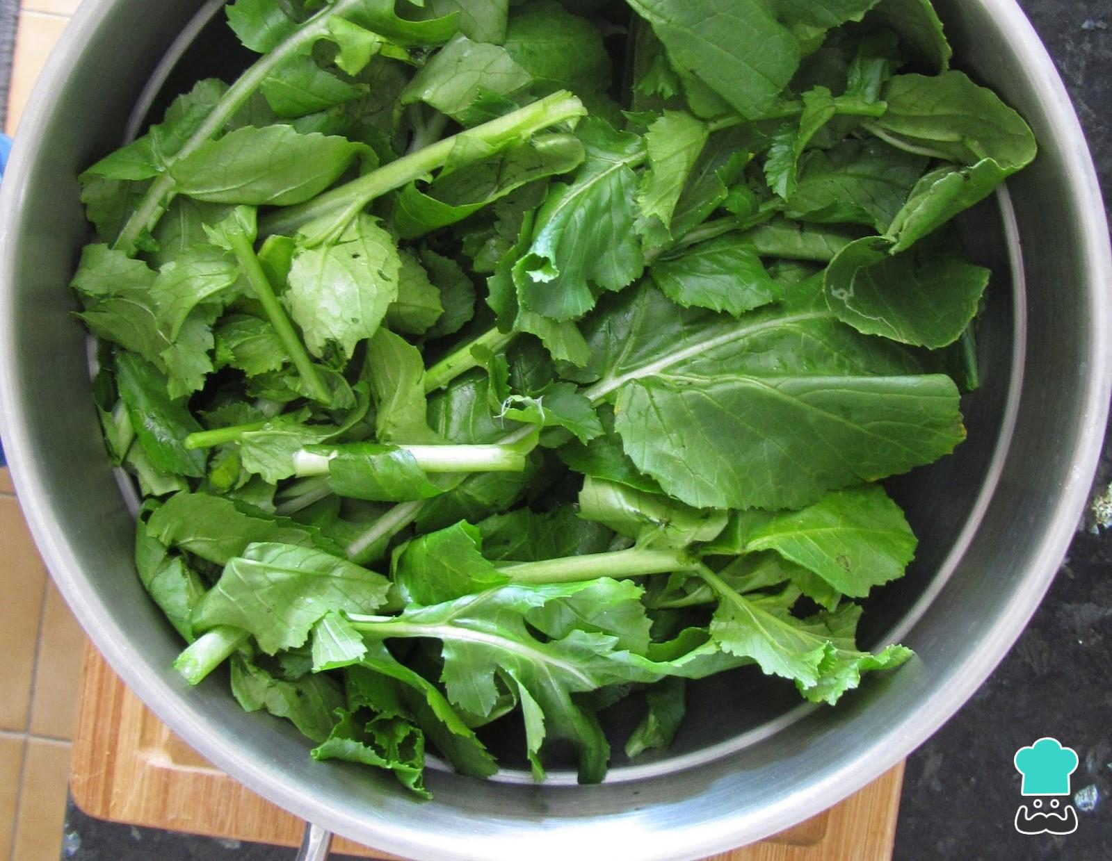 Em primeiro lugar, para preparar esta saborosa receita vegetariana e vegana comece por preparar os grelos: separe as folhas, lave e cozinhe ao vapor até que estejam tenras, prestando atenção para que não fiquem demasiado cozinhadas.