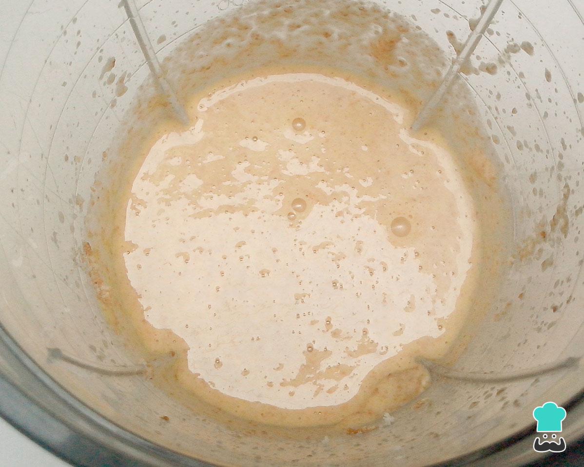 Coloque todos os ingredientes no liquidificador: a farinha de grão, a farinha de trigo, a água, o azeite e o sal. Bata até misturar bem e coloque numa tigela. Deixe por 1 hora, para que a massa deste omelete de grão de bico fique mais espessa.