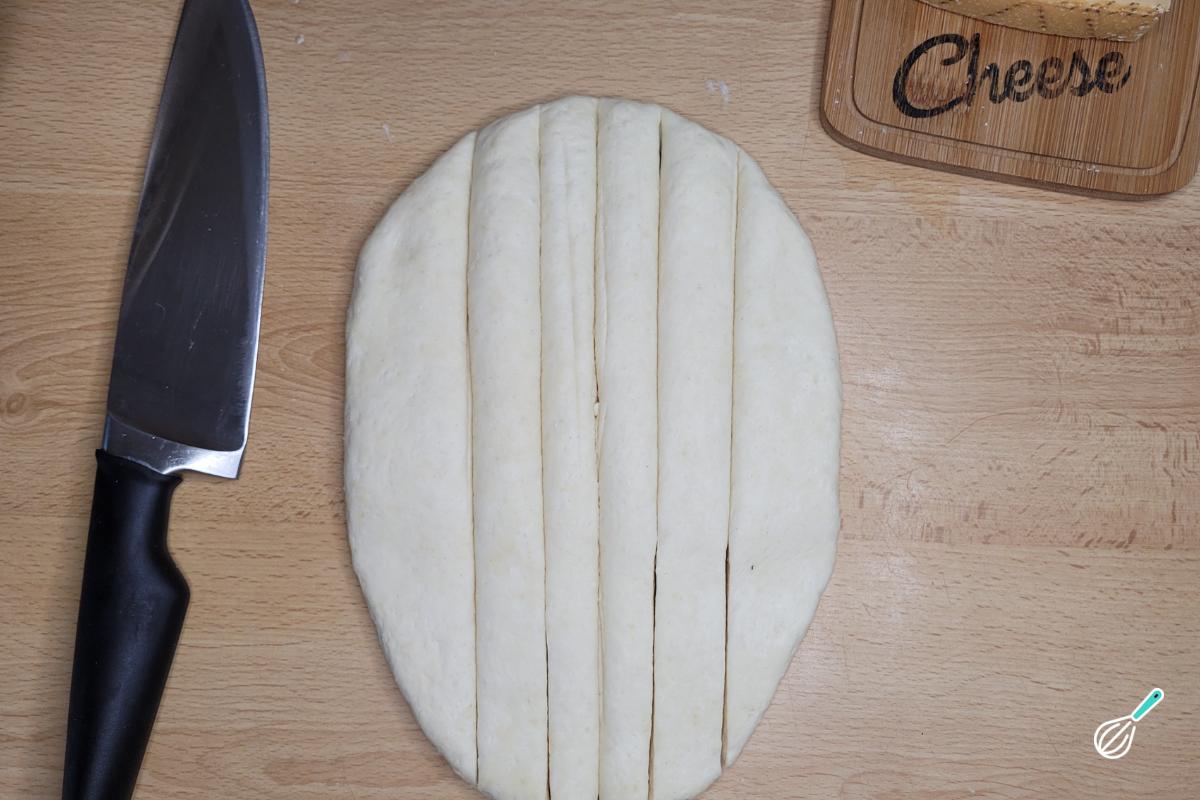 Corte a massa ao meio.