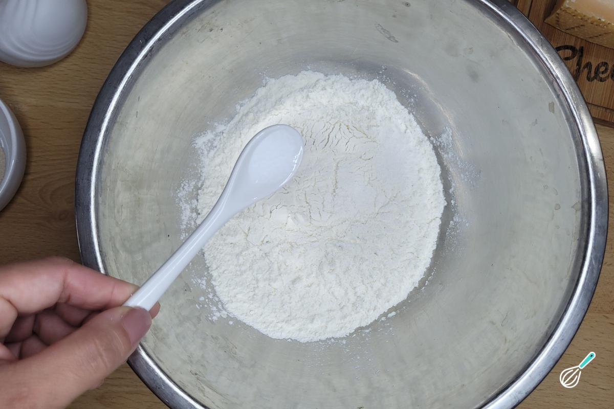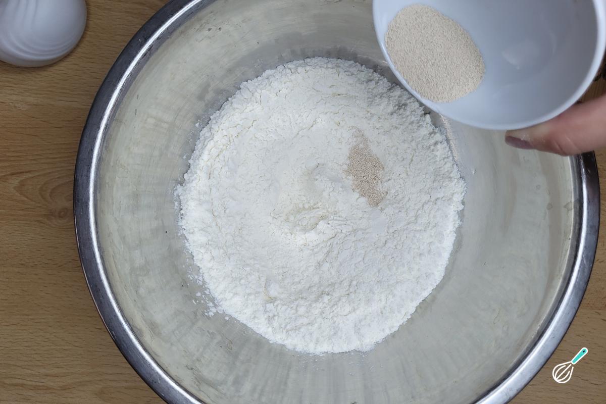Em uma tigela grande, misture a farinha e o sal.