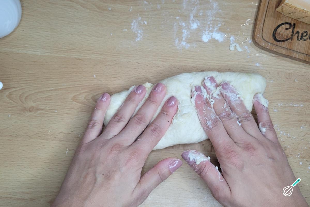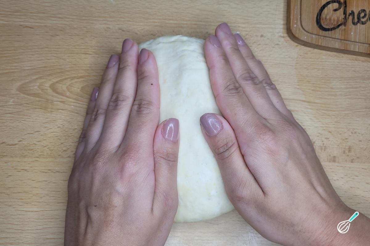 Sove com a base da palma da mão até ter uma massa lisa e elástica. Essa massa é um pouquinho mais durinha.