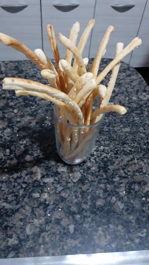Depois retire o pano e leve os palitos de pão a assar durante 15-20 minutos, ou até ficarem ligeiramente dourados.