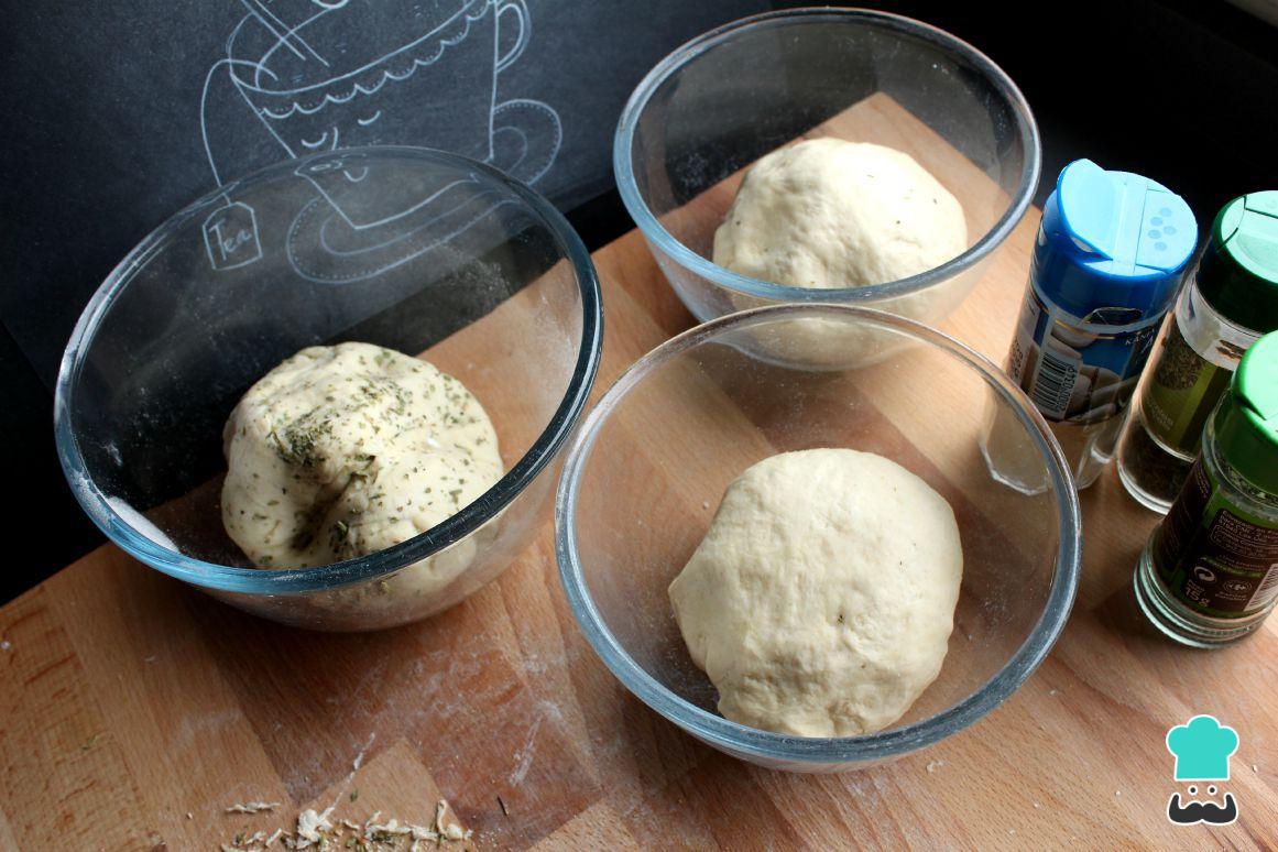 Quando a massa do pão dos grissinis estiver pronta (lisa e sem grudar), se quiser pode separar em várias bolinhas, e assim aromatizar cada uma com ingredientes diferentes.