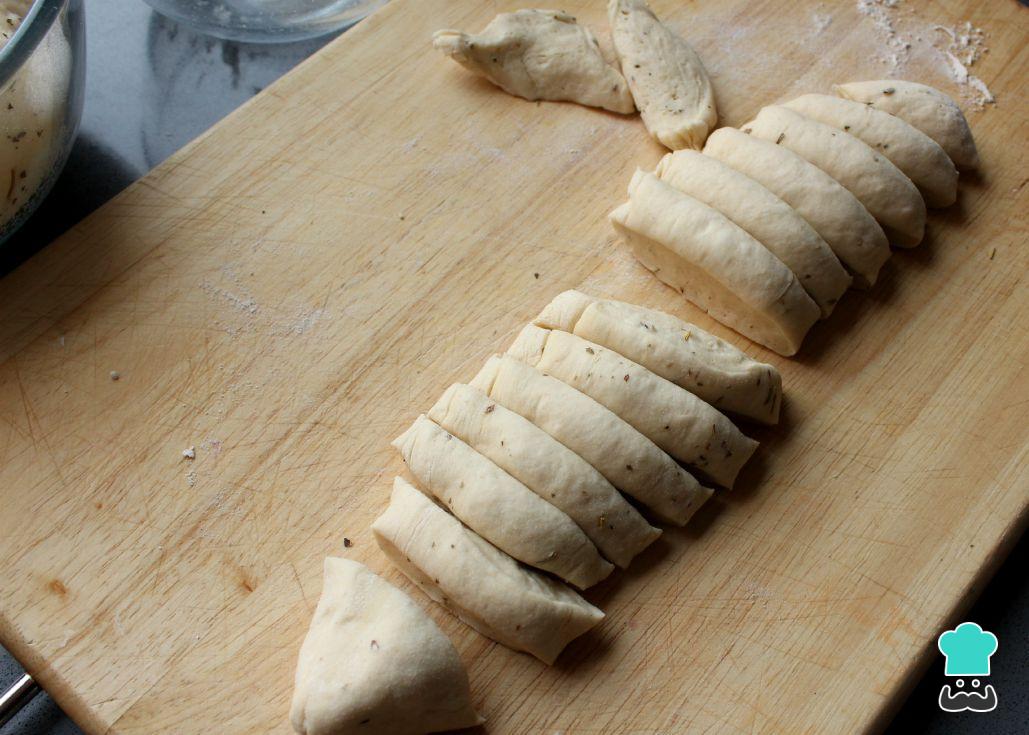 Após o tempo indicado, amasse as bolas por 30 segundos, para libertar o ar, e forme um rolinho com cada uma delas.