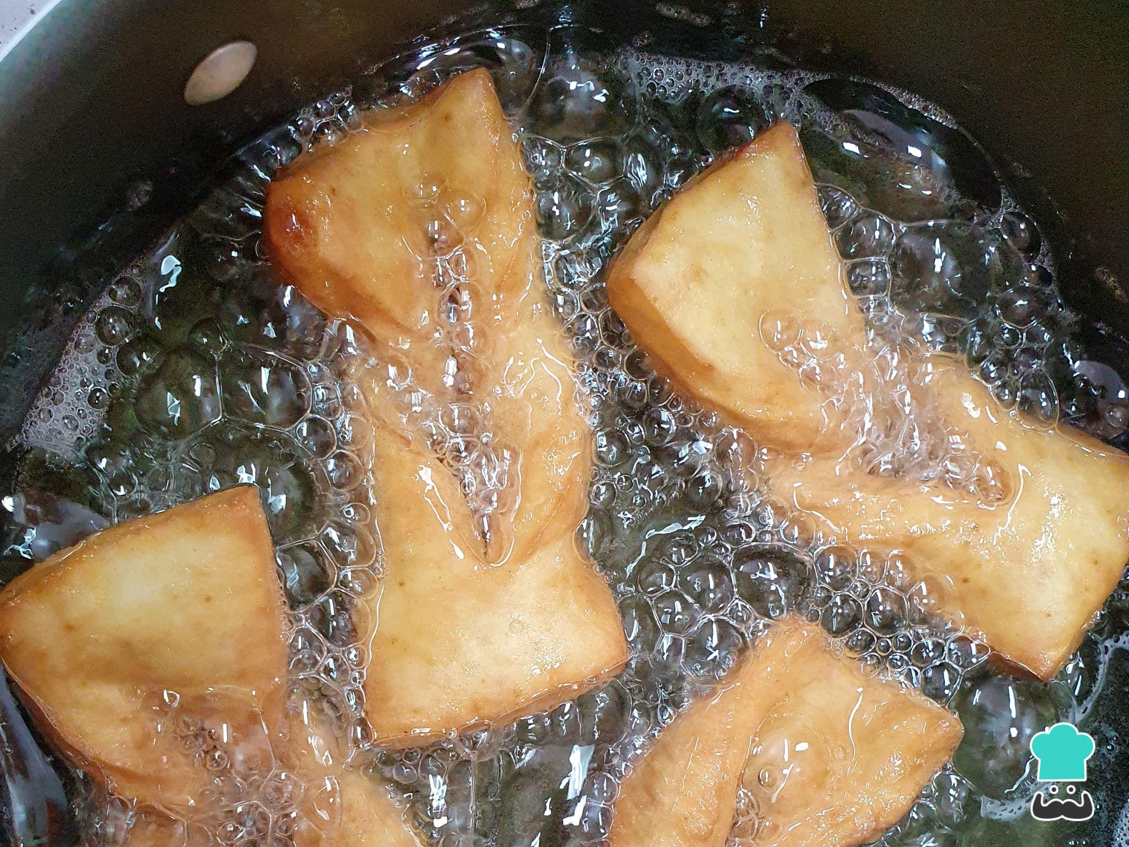 Frite por imersão os grostolis, pouco a pouco, controlando a chama, até que eles estejam douradinhos.