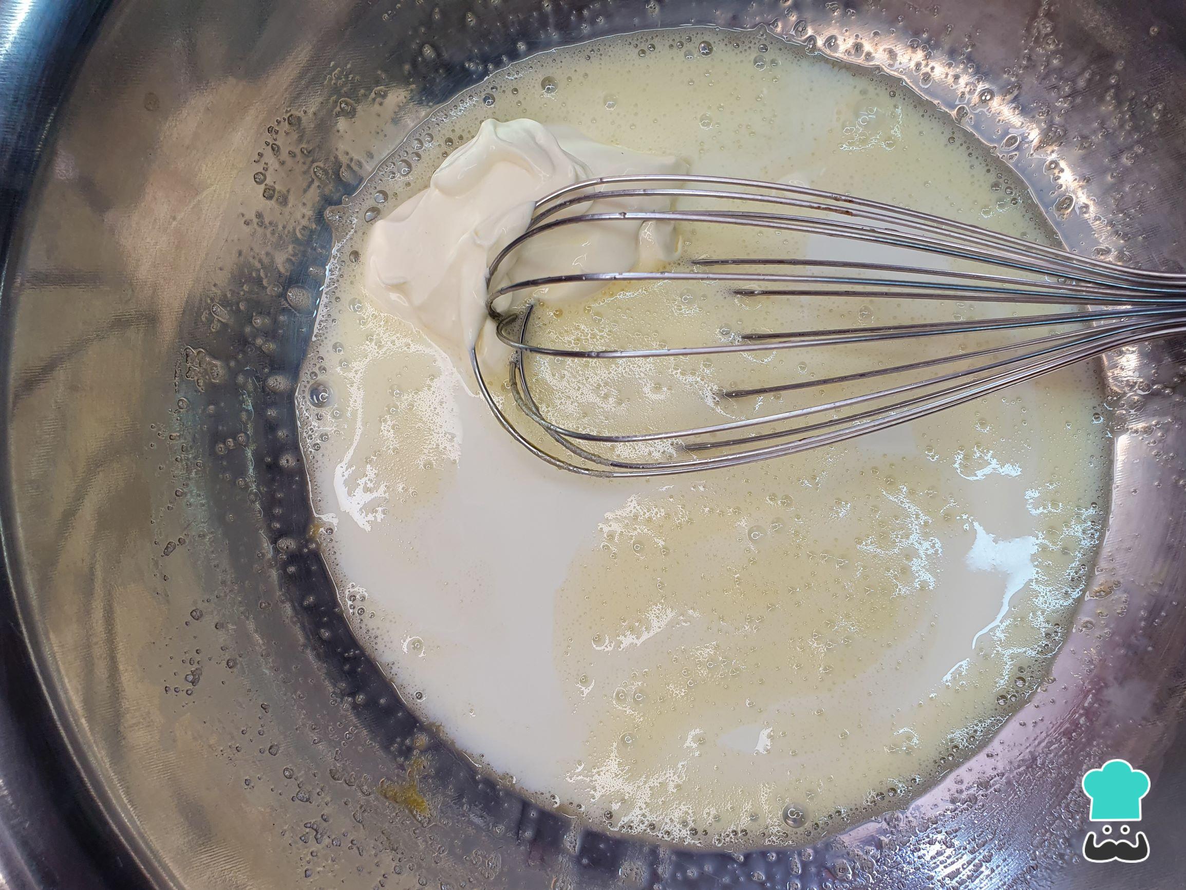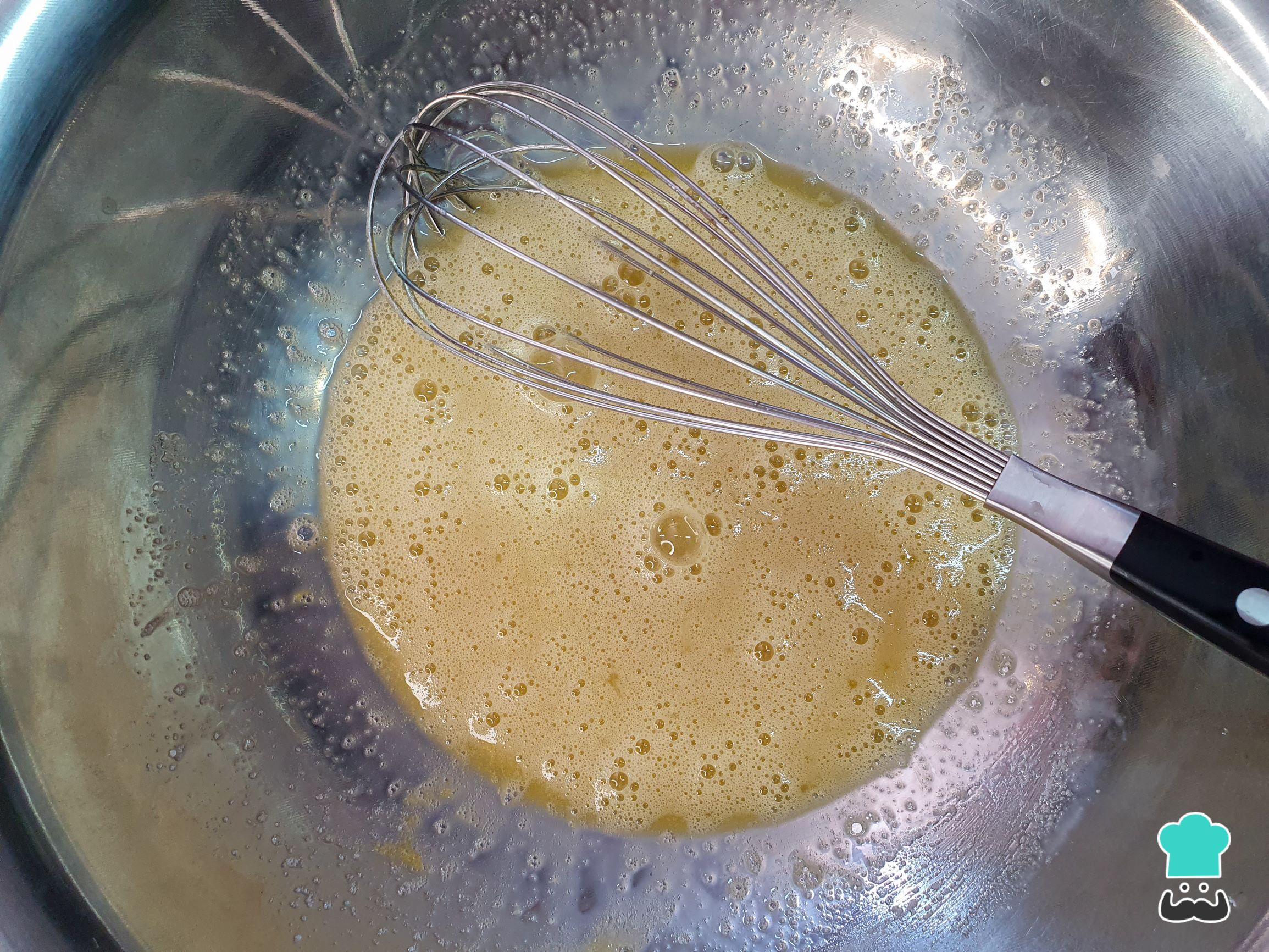 Em um bowl misture os ovos e as duas colheres de açúcar e bata muito bem com a ajuda de um fouet.