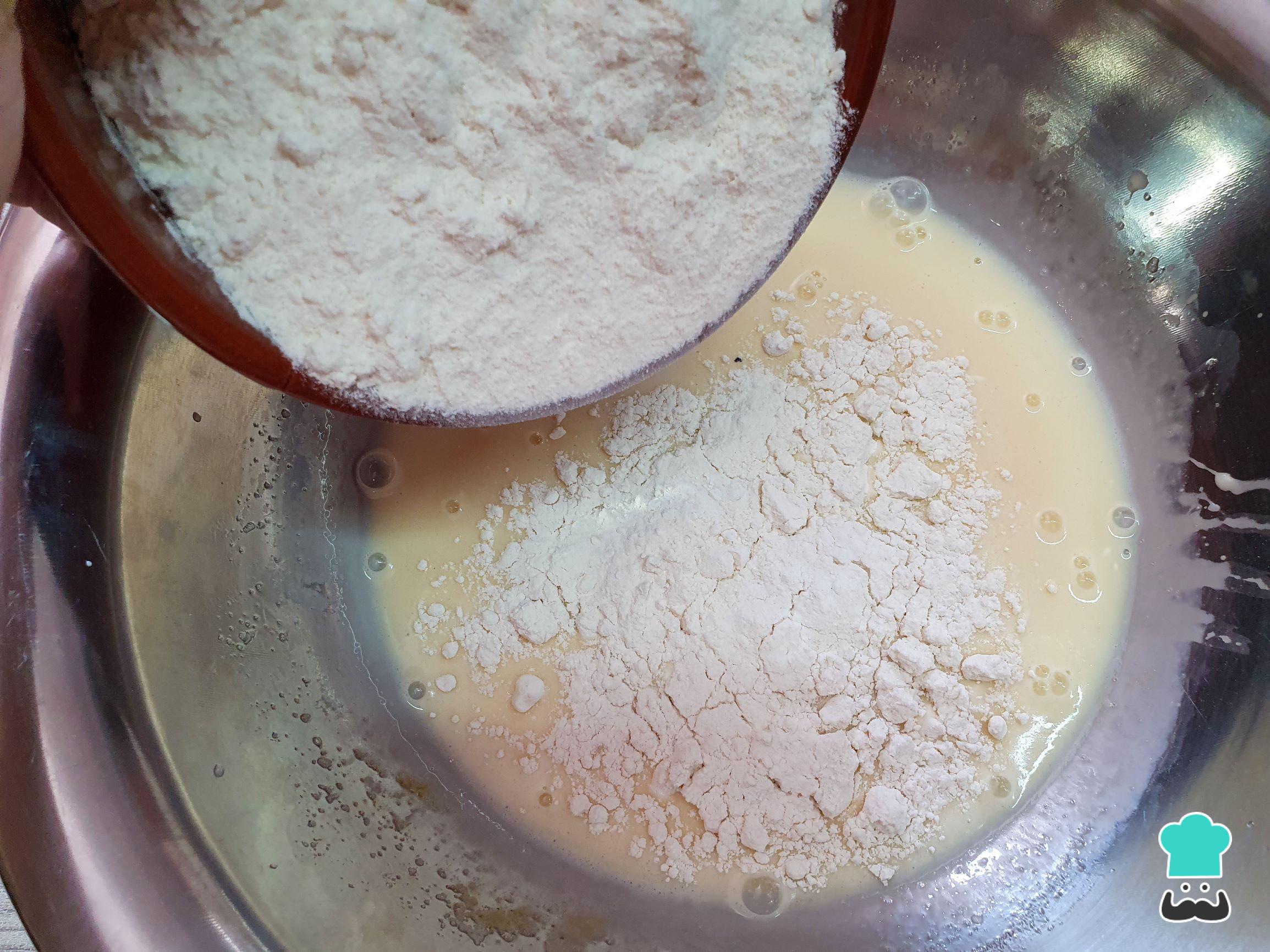 Acrescente a farinha de trigo aos poucos. Não será necessário utilizar toda ela. Acrescente também o fermento neste momento.