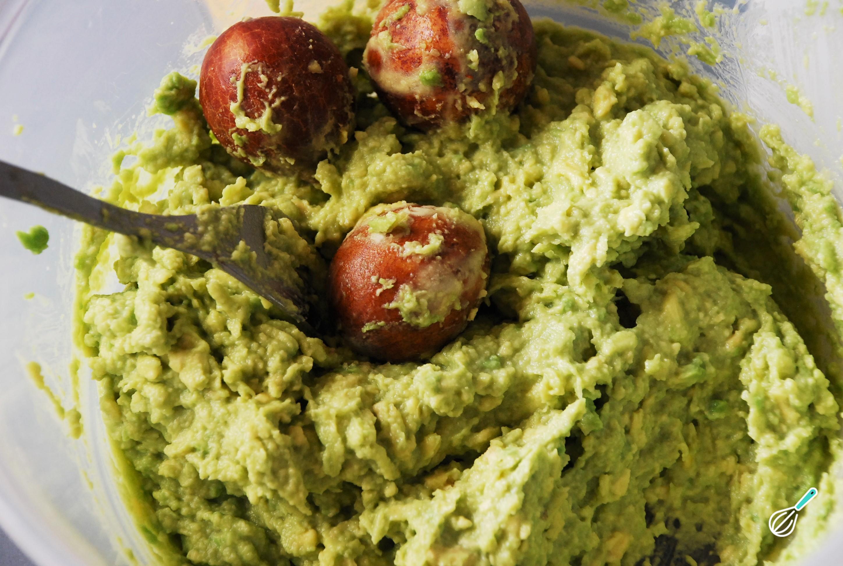 Esmague a polpa com um garfo e sem tirar o caroço, pois ele evita que o abacate oxide e fique escuro.