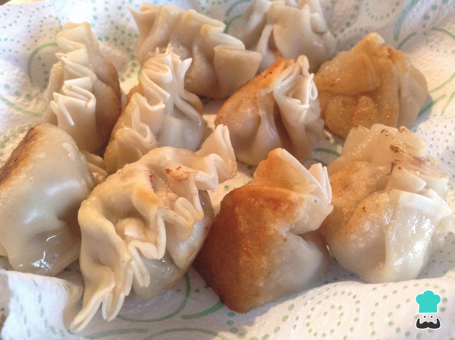 Ajude a remover o excesso de gordura das guiozas deixando-as repousar sobre um pouco de papel de cozinha.
