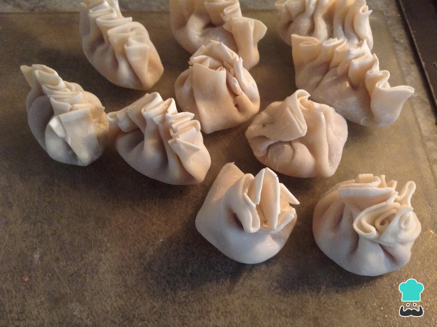 O ideal é que consiga fazer a forma das guiozas como encontra nos restaurantes. Esta forma tão típica pode ser feita com as suas mãos, tendo muito cuidado para evitar que a massa se rasgue. As diferentes formas também podem ajudar a distinguir as guiozas caso faça diferentes recheios. Falando nisso veja também a nossa receita de guiozas de frango.