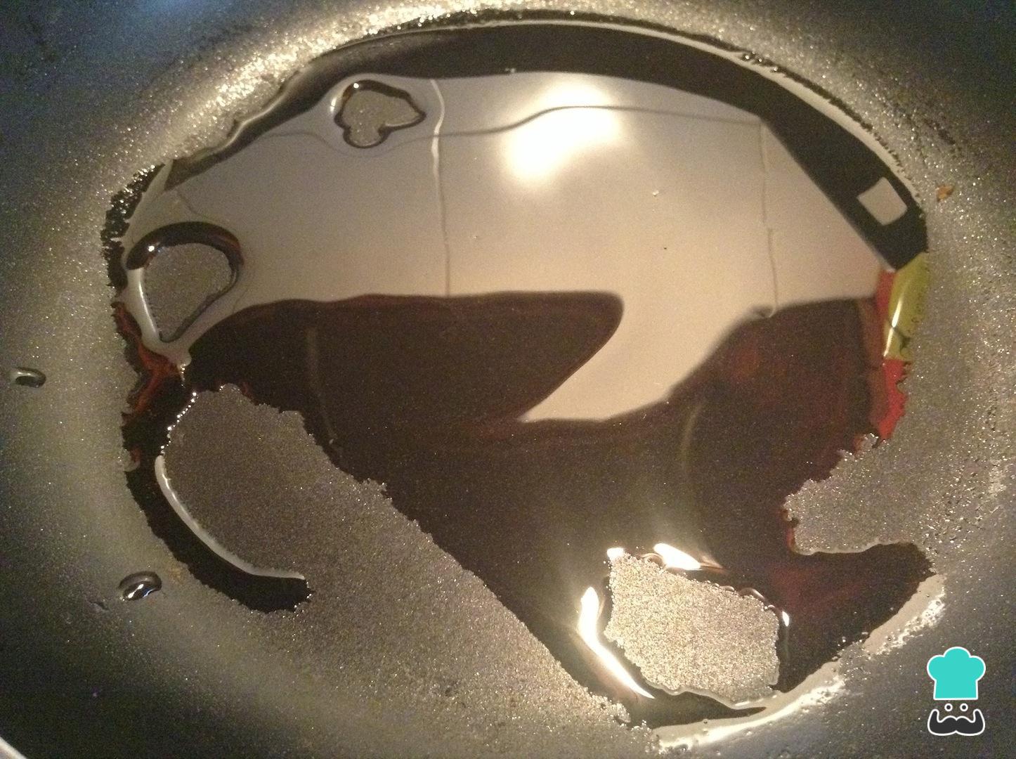 No nosso caso, vamos fritar a guiozas, assim sendo, deve colocar uma frigideiras em fogo médio acrescentando um pouco de óleo de girassol.