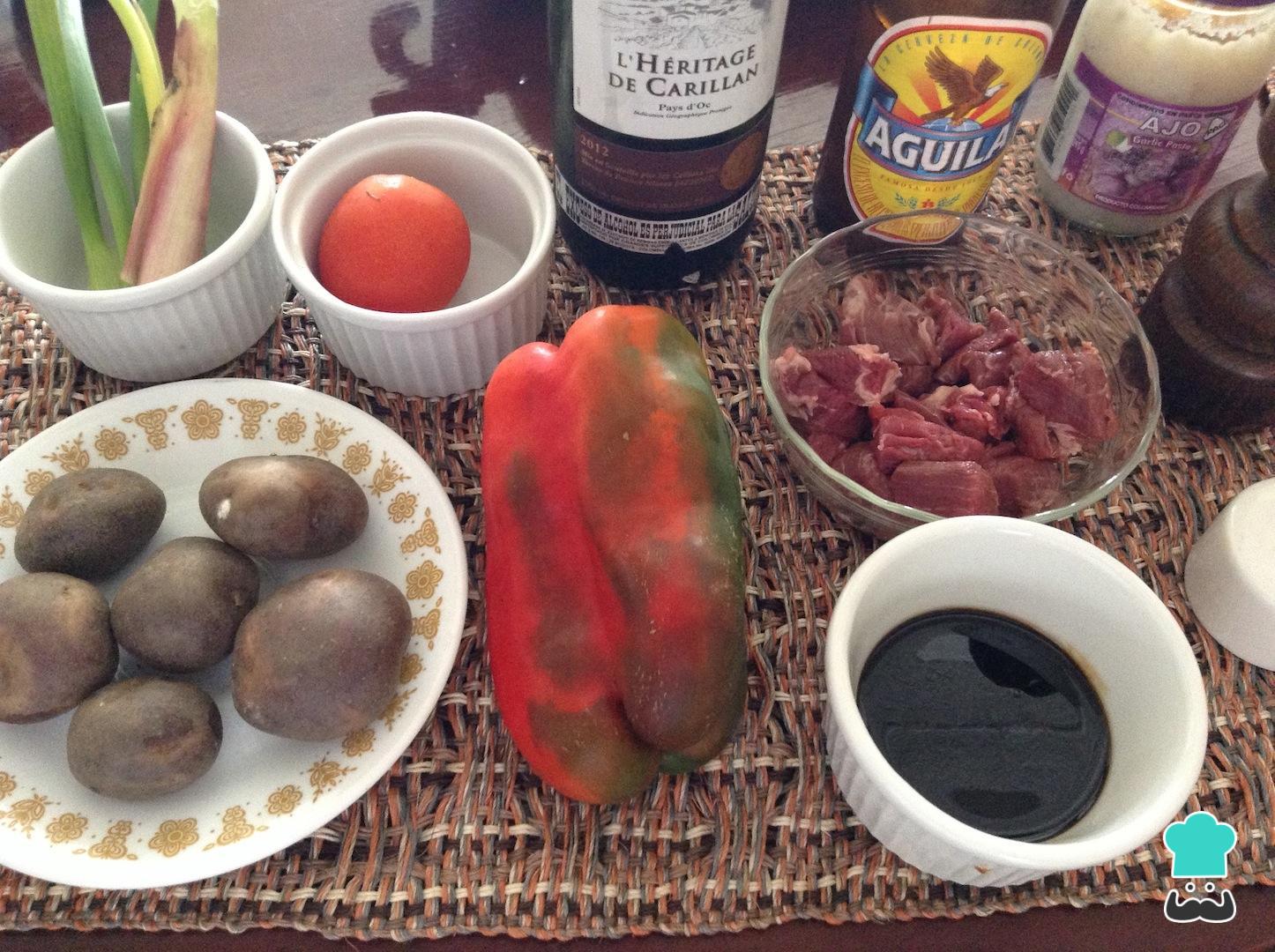 Para fazer esta receita de guisado bovino com batatas comece por reunir os ingredientes.