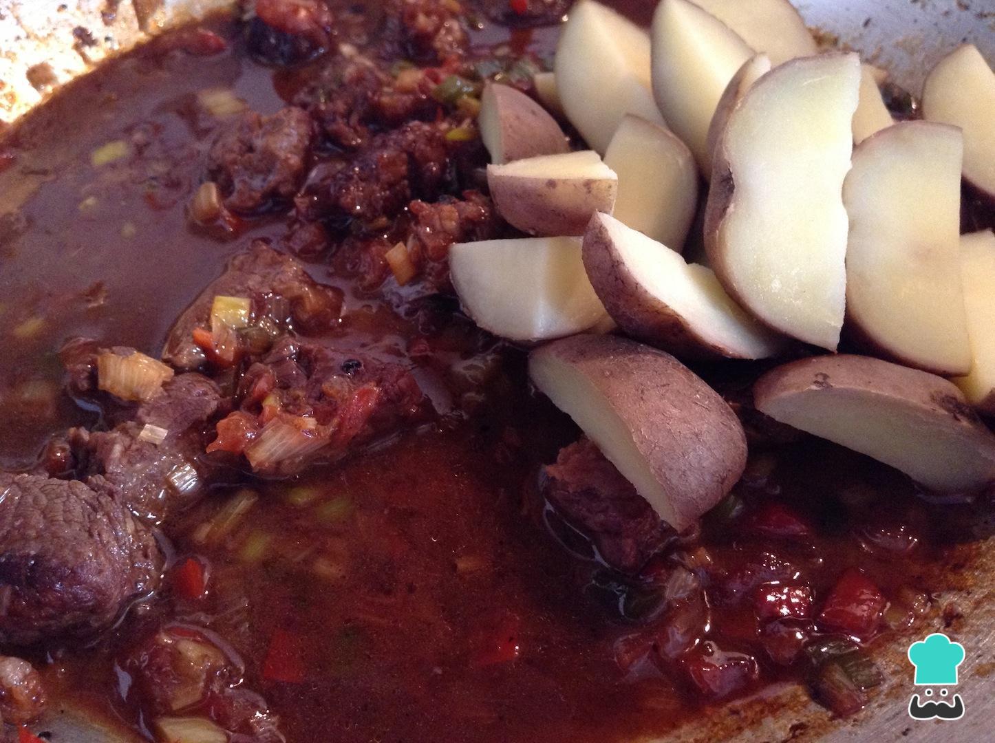 Finalmente, quando a carne estiver cozinhada, retifique o sabor com sal e pimenta e acrescente-lhe as batatas cozidas. Misture bem para que recebam o sabor do guisado.