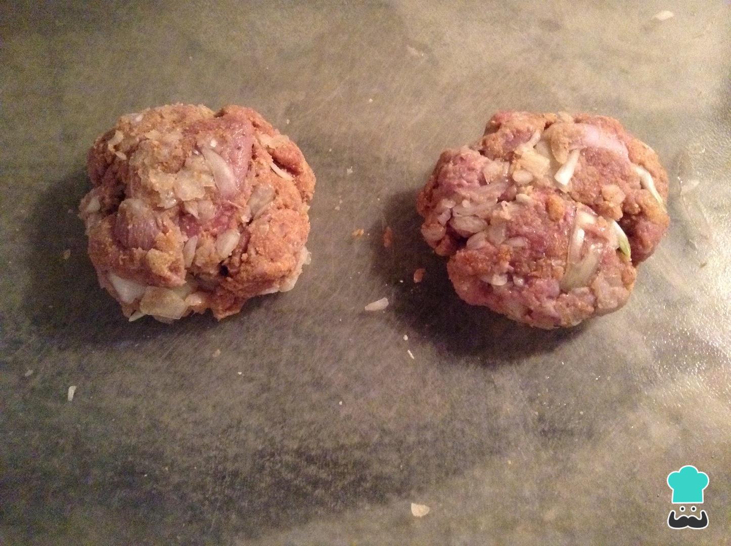 O ideal é que o preparado destes hambúrgueres fique firme, de forma a que possam ser facilmente modelados sem desmanchar. Reserve por 10-15 minutos na geladeira, para firmar.