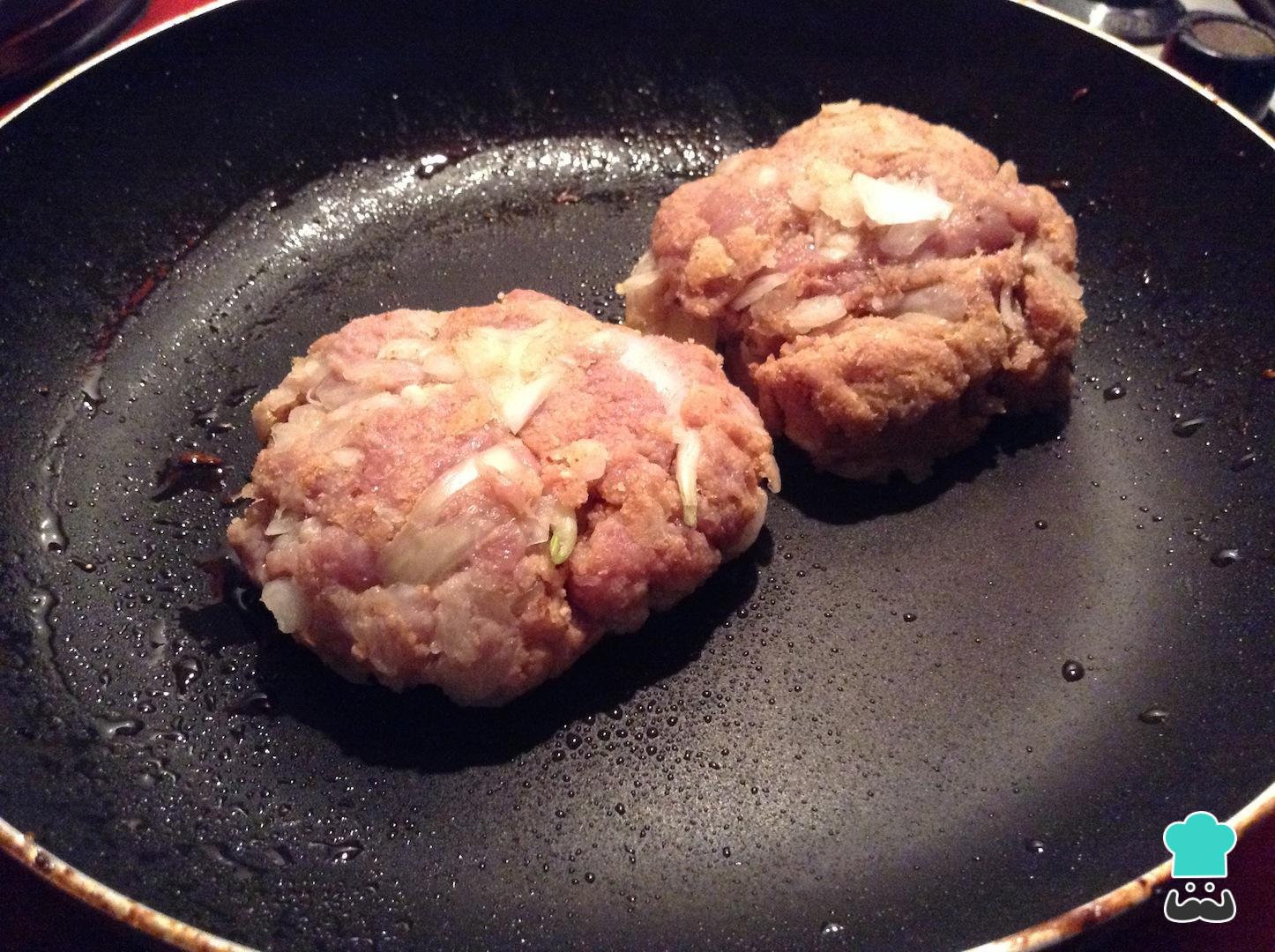 Após o tempo indicado, cozinhe o hambúrguer americano caseiro numa frigideira em fogo médio com um pouco de óleo de girassol. Cozinhe dos dois lados, até que fique dourado por fora e cozinhado por dentro.