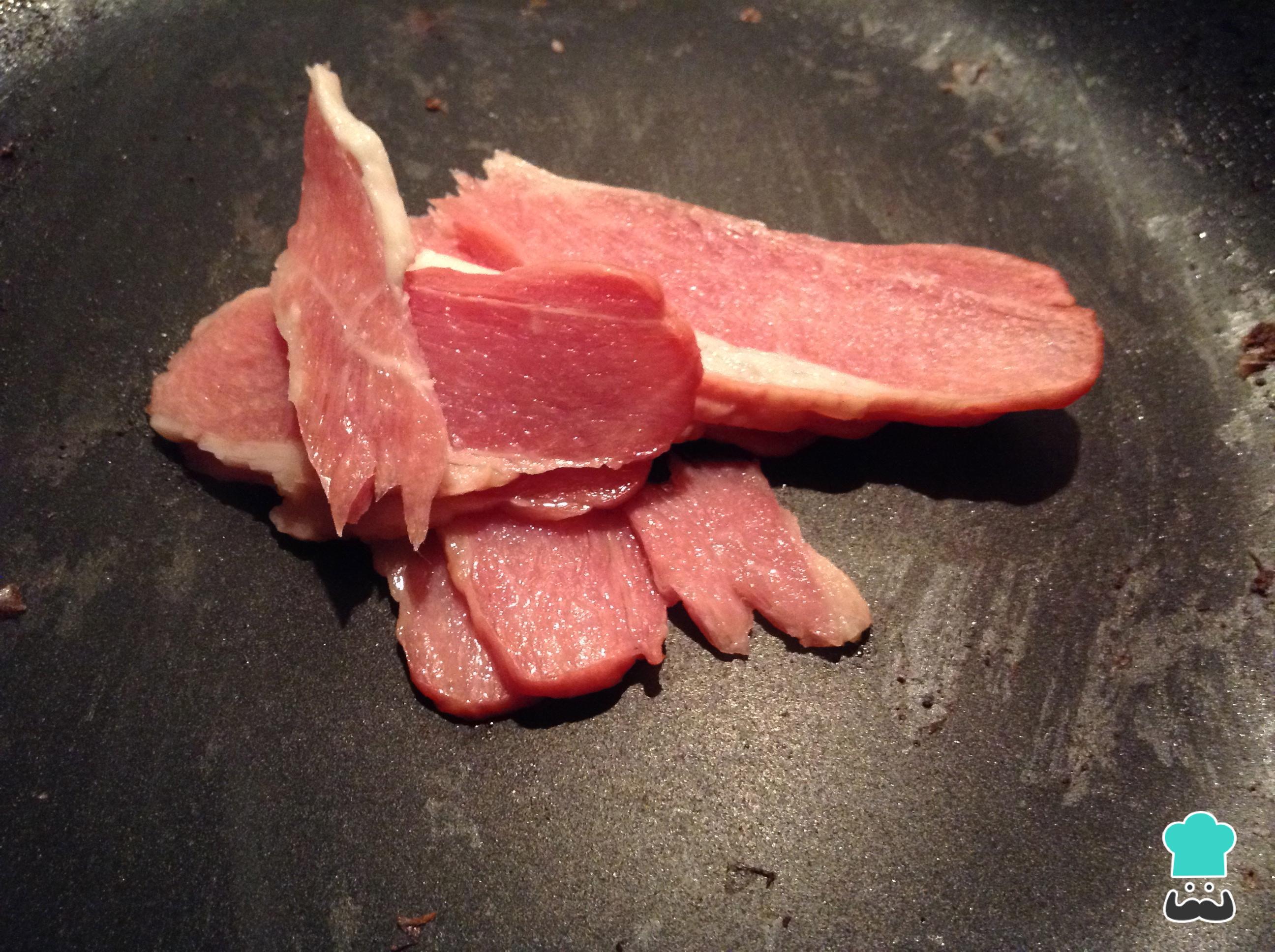 Em uma frigideira à parte, também com um pouco de óleo, frite o bacon cortado em pedaços até ficar dourado. Se quiser optar por uma forma de cozinhar mais saudável, simplesmente leve ao forno médio até dourar.