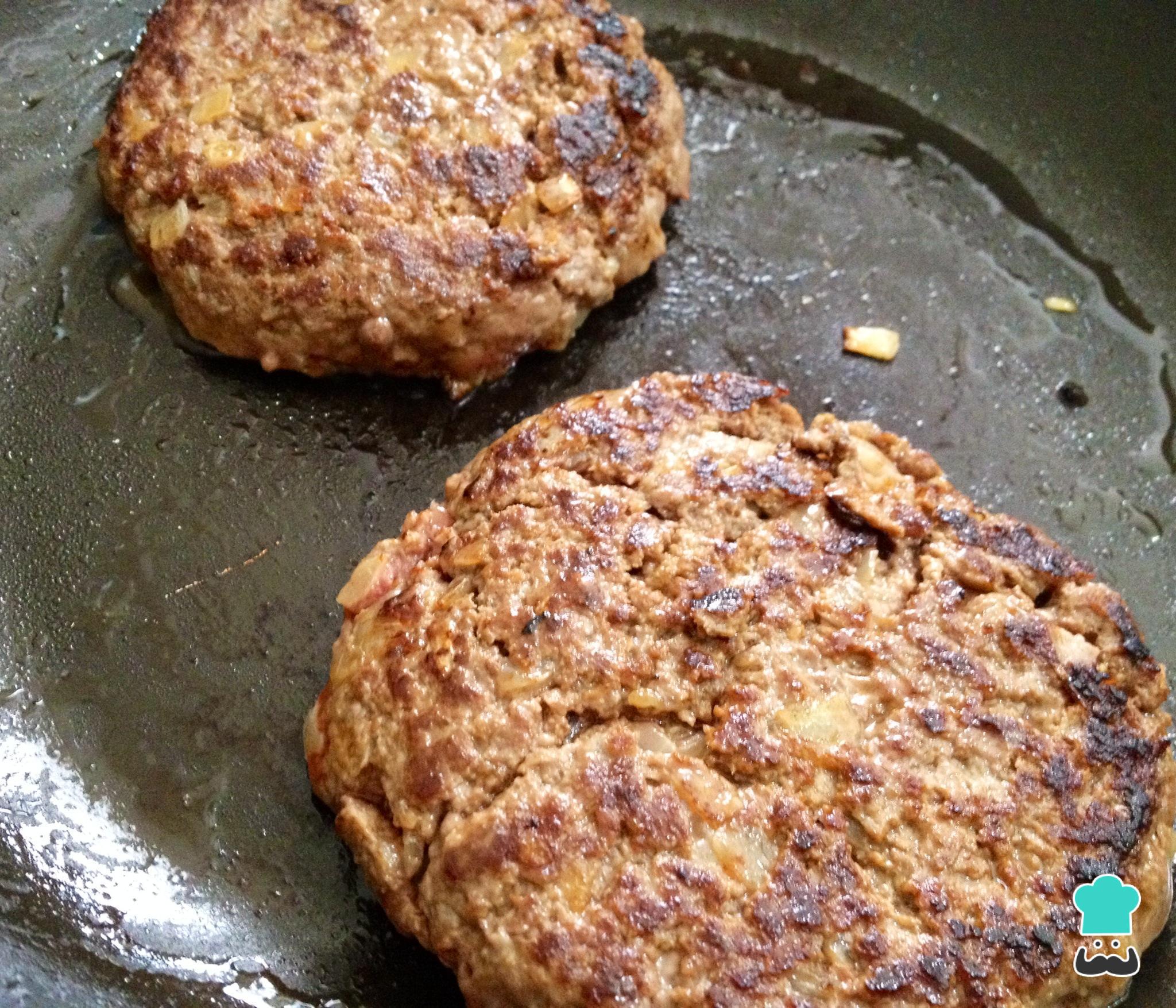 Após esse tempo, frite os hambúrgueres em uma frigideira em fogo médio com o óleo. Bastarão 3 minutos de cada lado, ou um pouco mais se gostar da carne bem-passada.