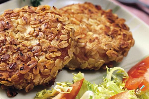Em um prato, coloque a aveia em flocos e envolva um de cada vez de seu hambúrguer caseiro fit.
