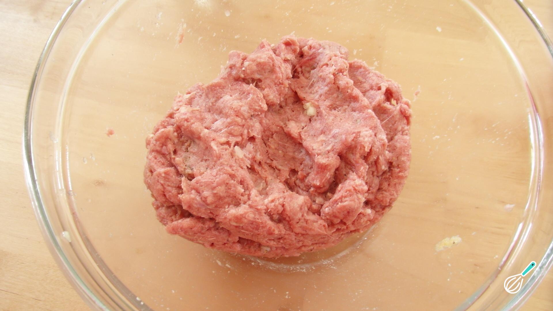 Em uma travessa grande, tempere a carne moída com o sal, cebola, alho, pimenta do reino e cebolinha.