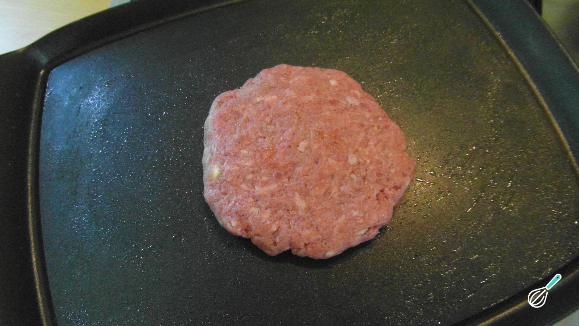 Unte uma forma com azeite (pode usar óleo de coco que é mais saudável, mas ele deixa um gostinho de coco) e leve o hambúrguer ao forno de 200 º C por 15 minutos. Depois, vire e deixe até dourar.