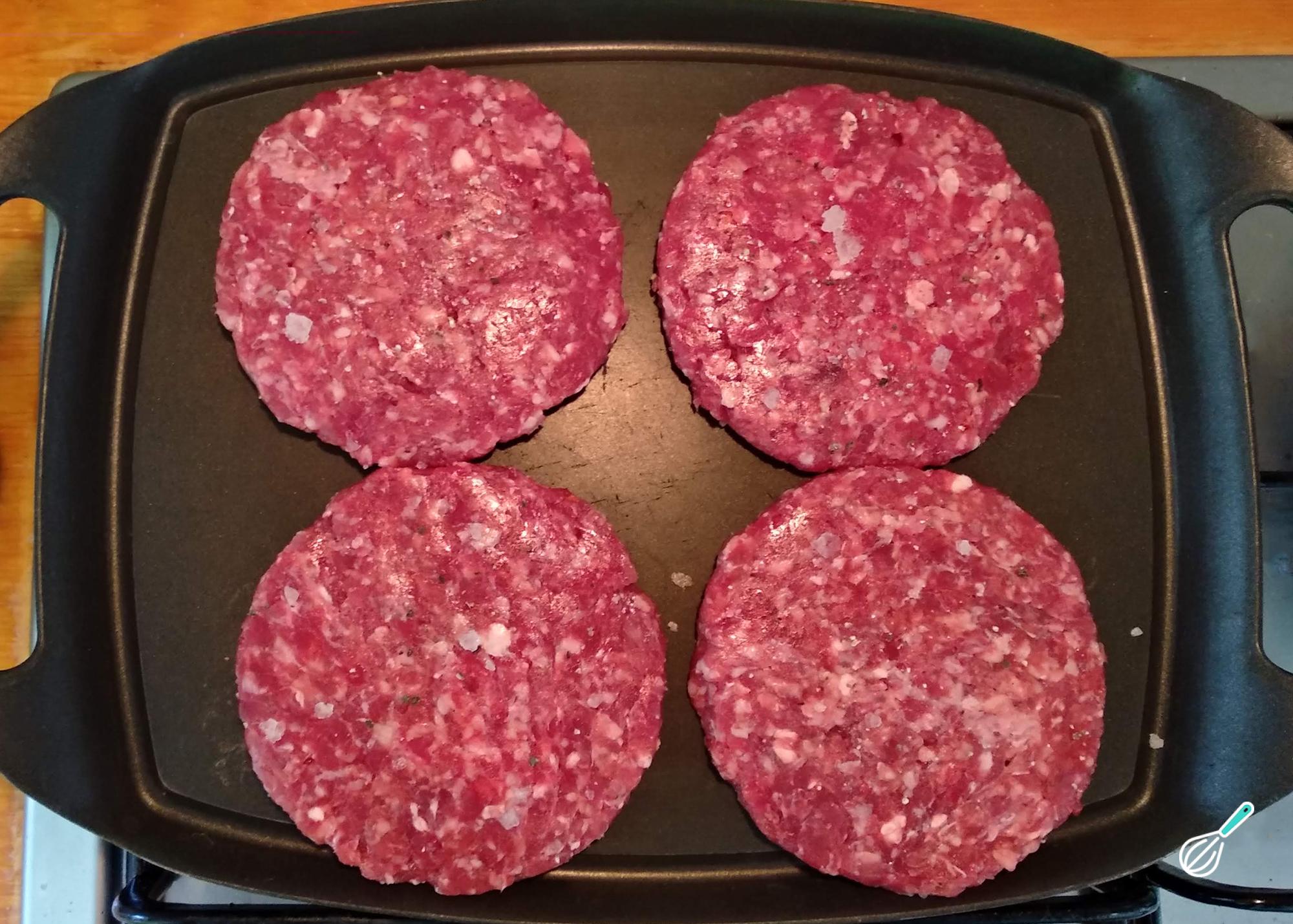 Dica: Os hambúrgueres deverão estar em temperatura ambiente. Retire-os na geladeira 30 minutos antes de preparar a receita.