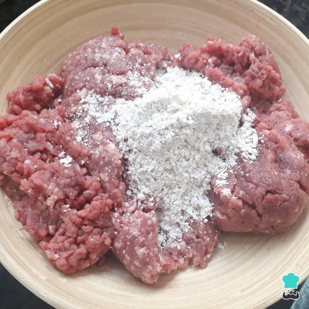 Para preparar o hambúrguer com creme de cebola caseiro basta juntar as carnes e o creme de cebola em um bowl e misturar muito bem com as mãos. Se quiser, poderá incrementar o sabor adicionando ervas picadas, alho moído, páprica, etc - lembre que não precisa adicionar sal porque o creme de cebola já contém sal.