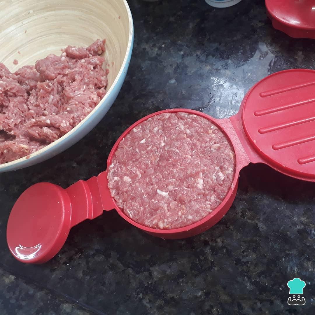 Dica: Se quiser hambúrgueres mais uniformes, pese 150 g de carne para cada bola.