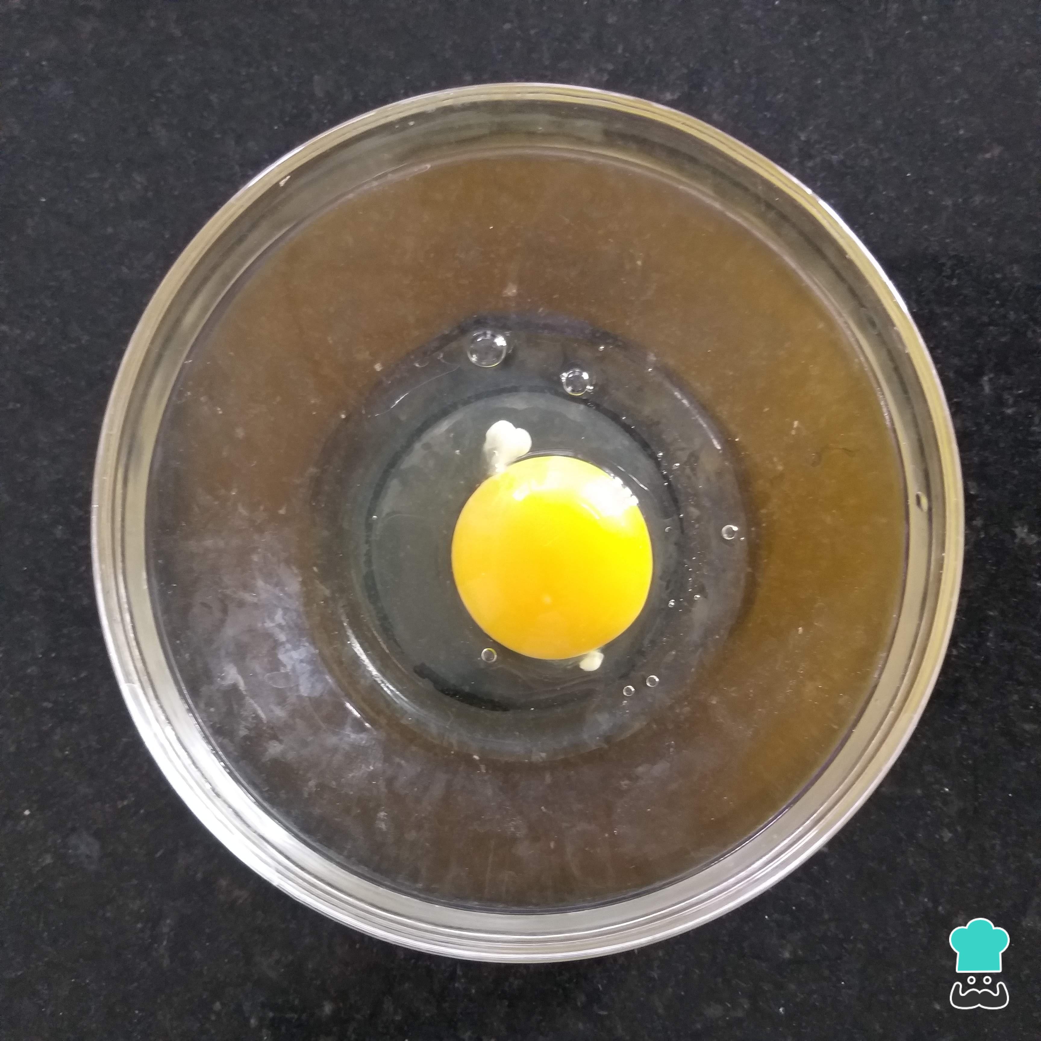 Começando o preparo do hambúrguer de atum e aveia, bata o ovo ligeiramente com um garfo. Nesta receita, o ovo é essencial para conferir liga entre os ingredientes e deixa o hambúrguer mais nutritivo.