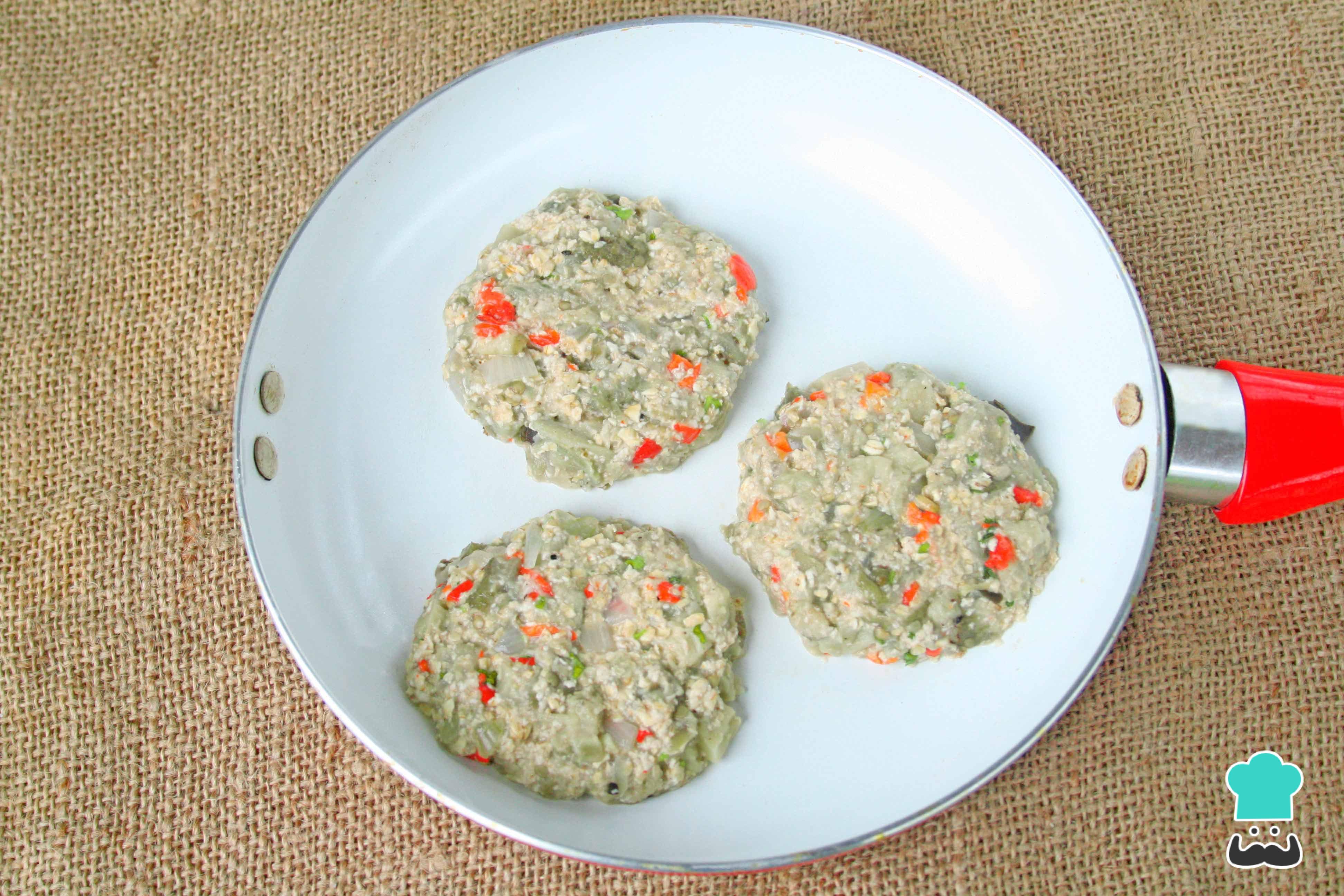 Dica: Se após o tempo indicado a massa do hambúrguer de legumes continuar mole demais para modelar, adicione um pouco mais de aveia ou farinha de rosca até dar liga.