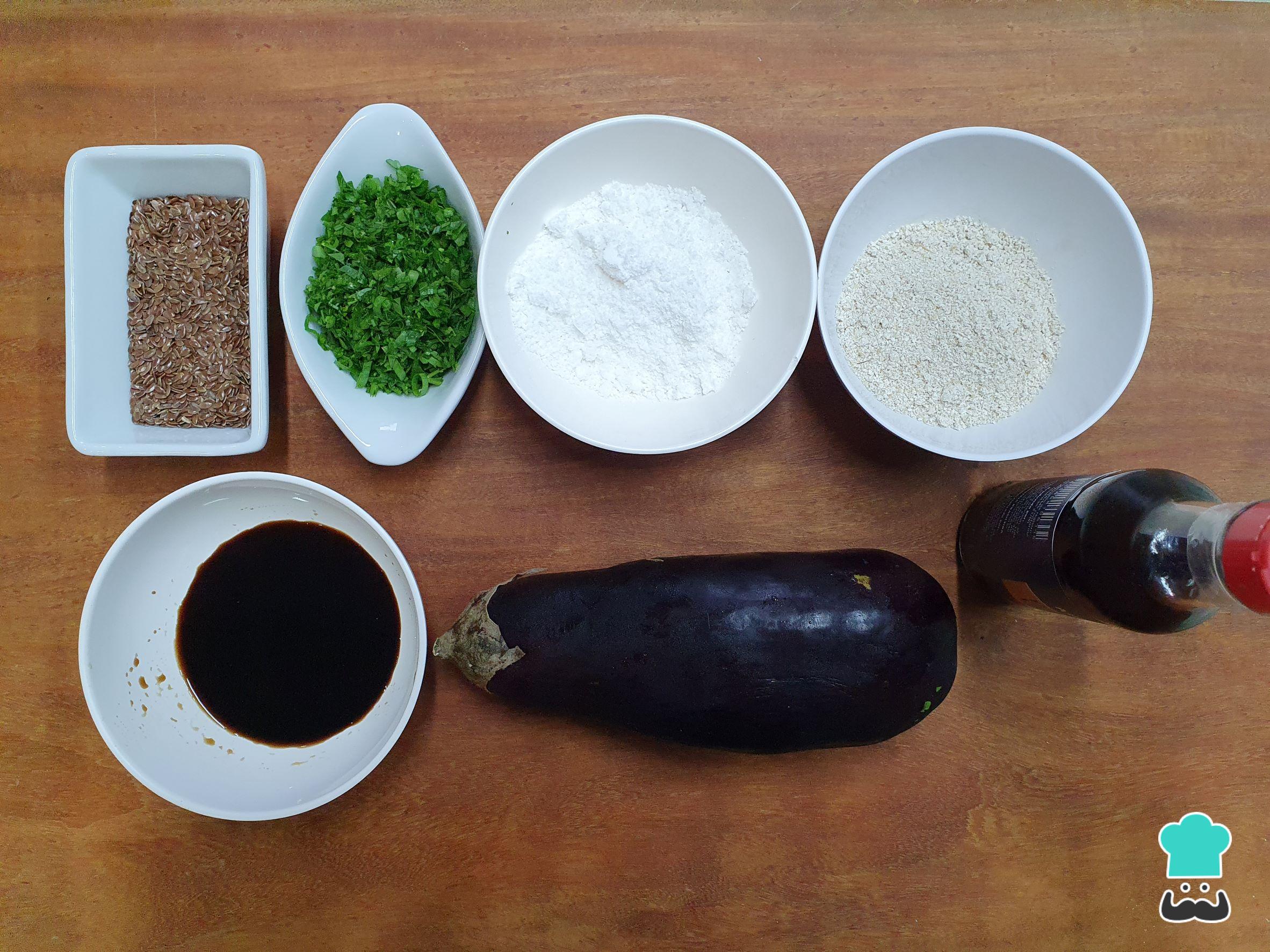 Separe todos os ingredientes necessários ao preparo do hambúrguer de berinjela.
