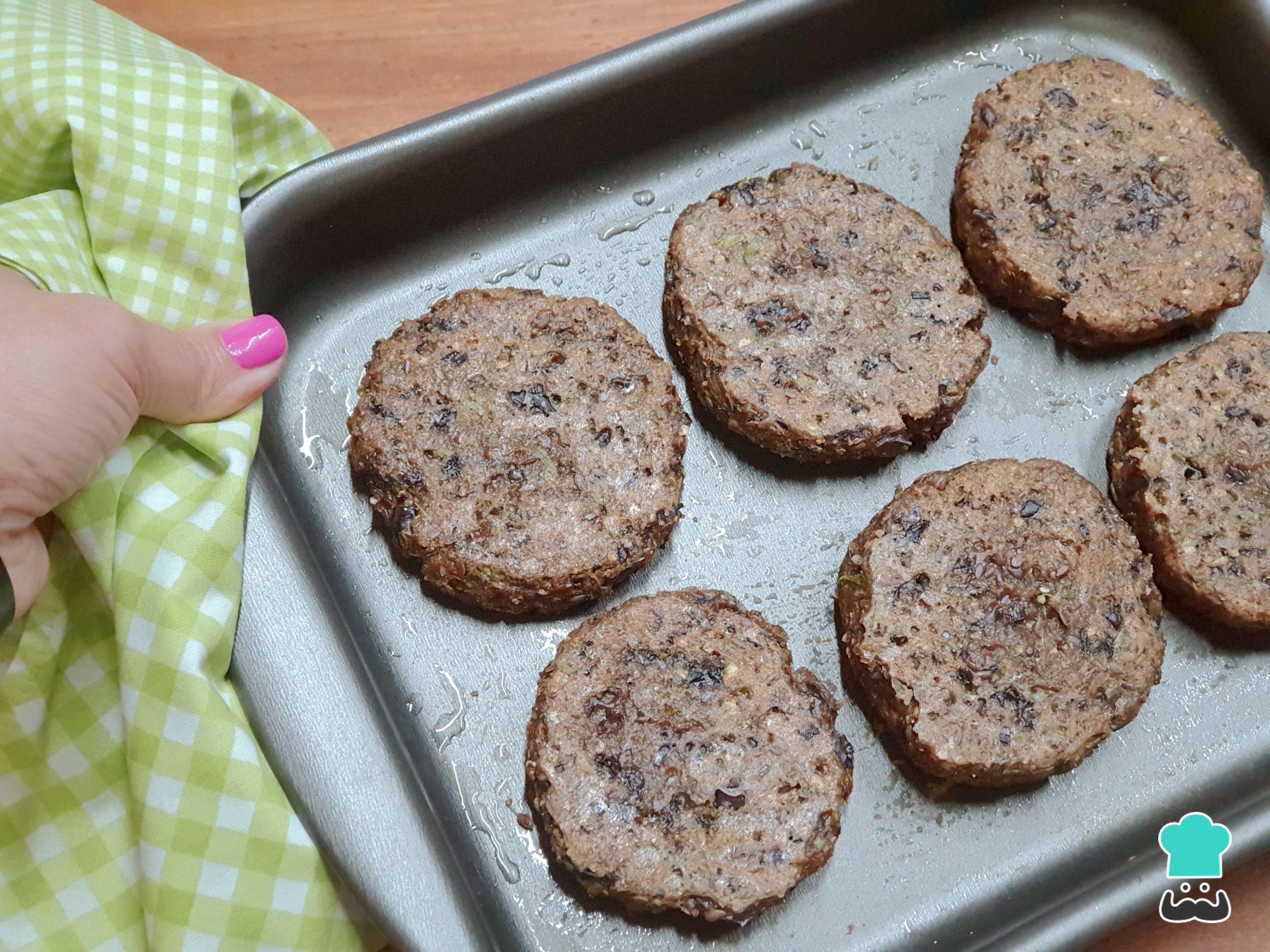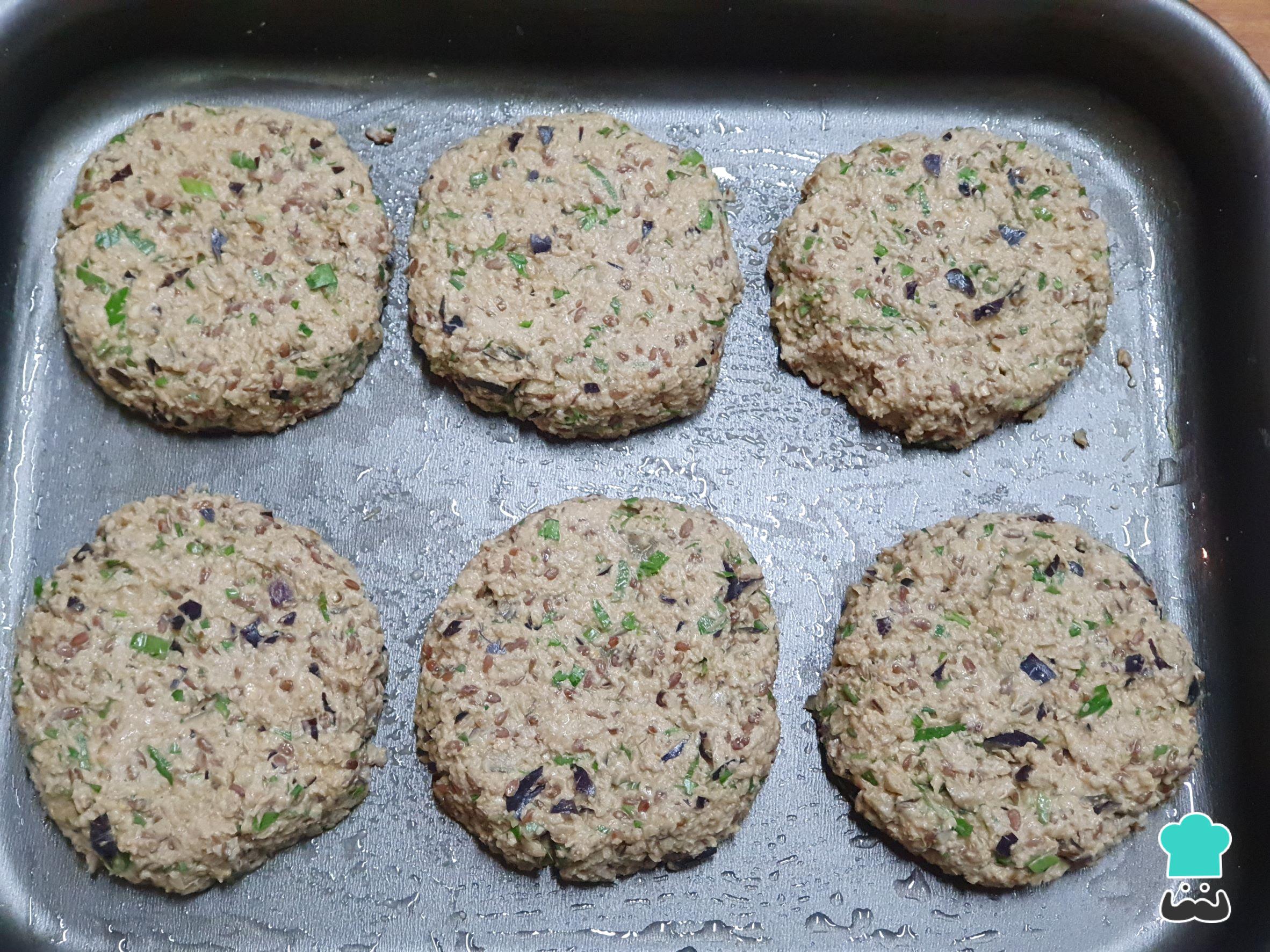 Depois de assar, o resultado será um hambúrguer de berinjela bem dourado e firme!