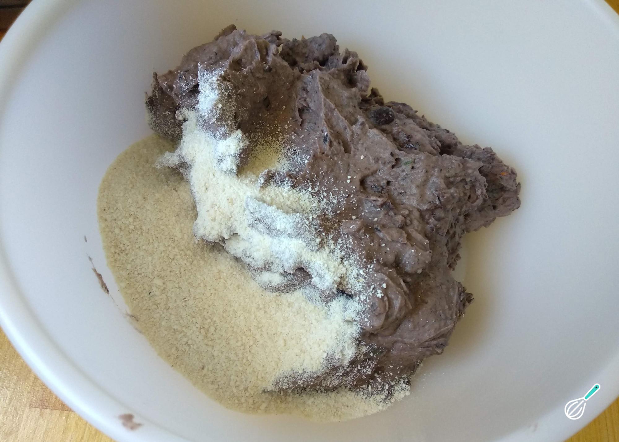 Dica: Nesta receita usamos farinha de mandioca porque ajuda a firmar facilmente a pasta de feijão e não tem glúten.