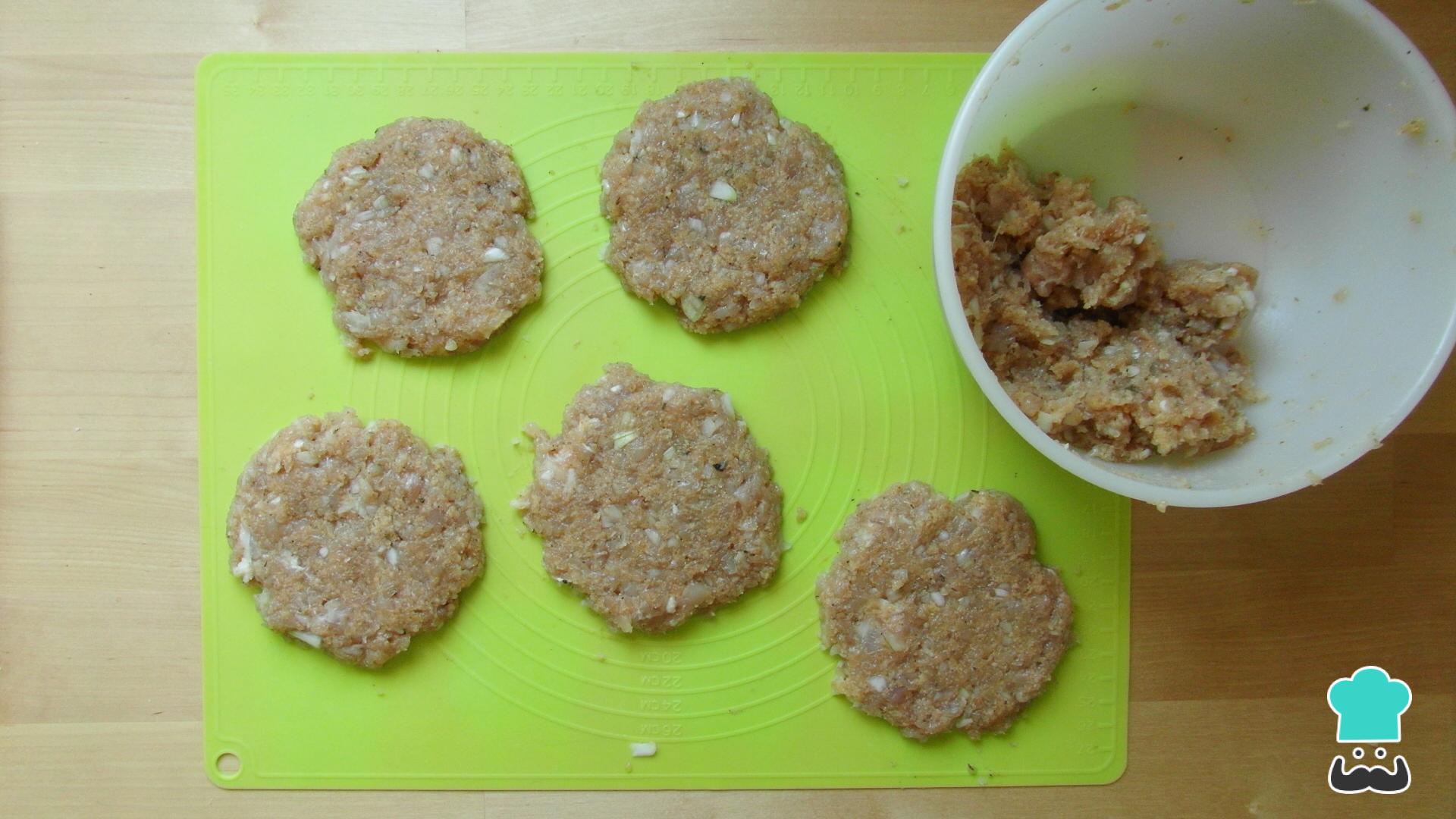 Após esse tempo forme bolas com o preparado de hambúrguer e esmague-as, para conferir a forma de hambúrgueres.