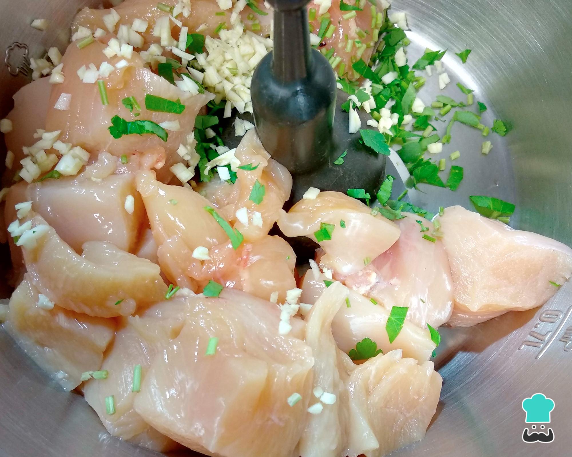 Coloque os pedaços de frango num processador ou robot de cozinha. Coloque temperos a gosto e processe por 5 minutos ou até virar carne de frango moída.