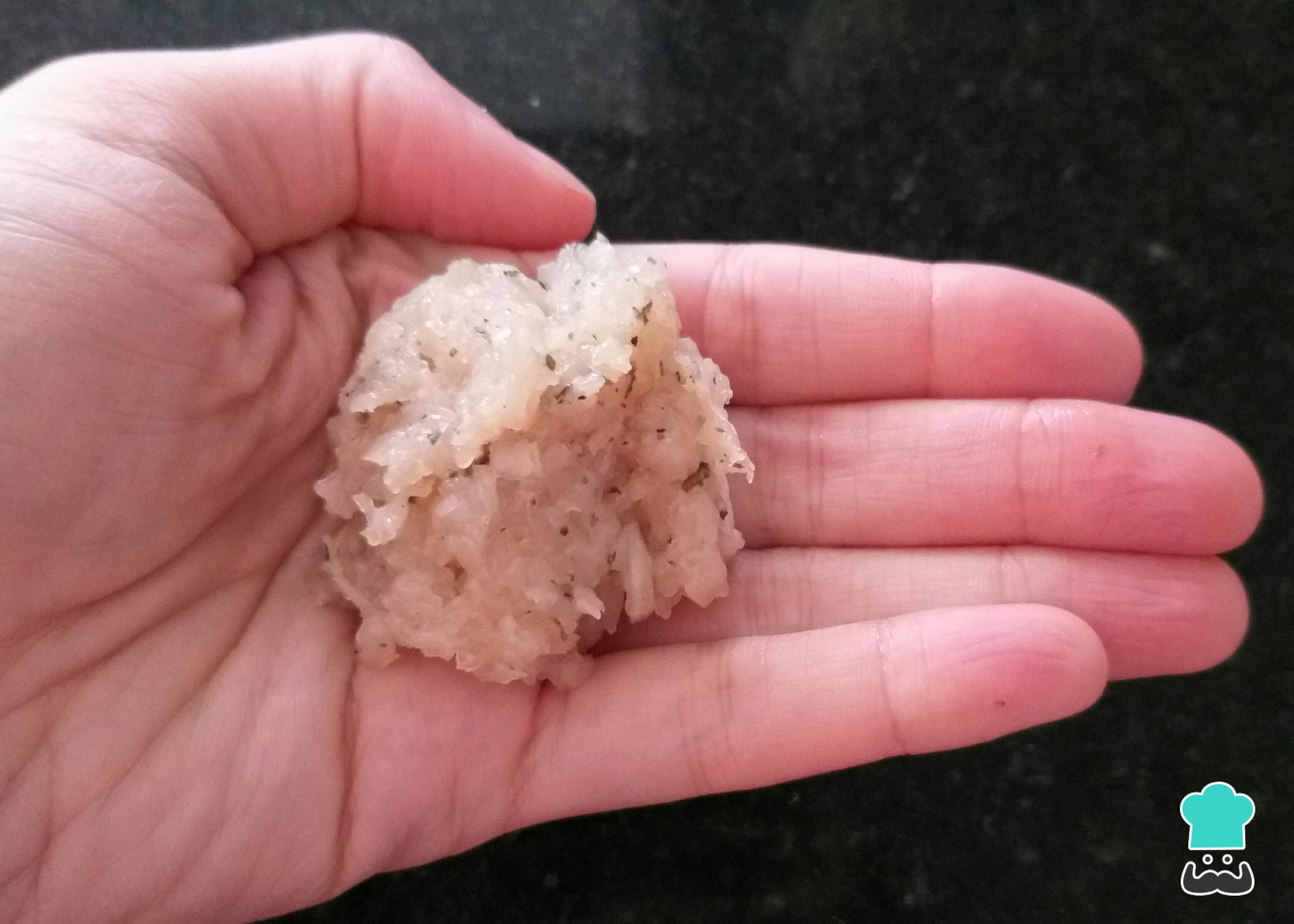 Retire do processador, aperte bem a massa com as mãos e divida em pequenas porções. Faça bolinhas e jogue a massa de uma mão para a outra, para modelar.