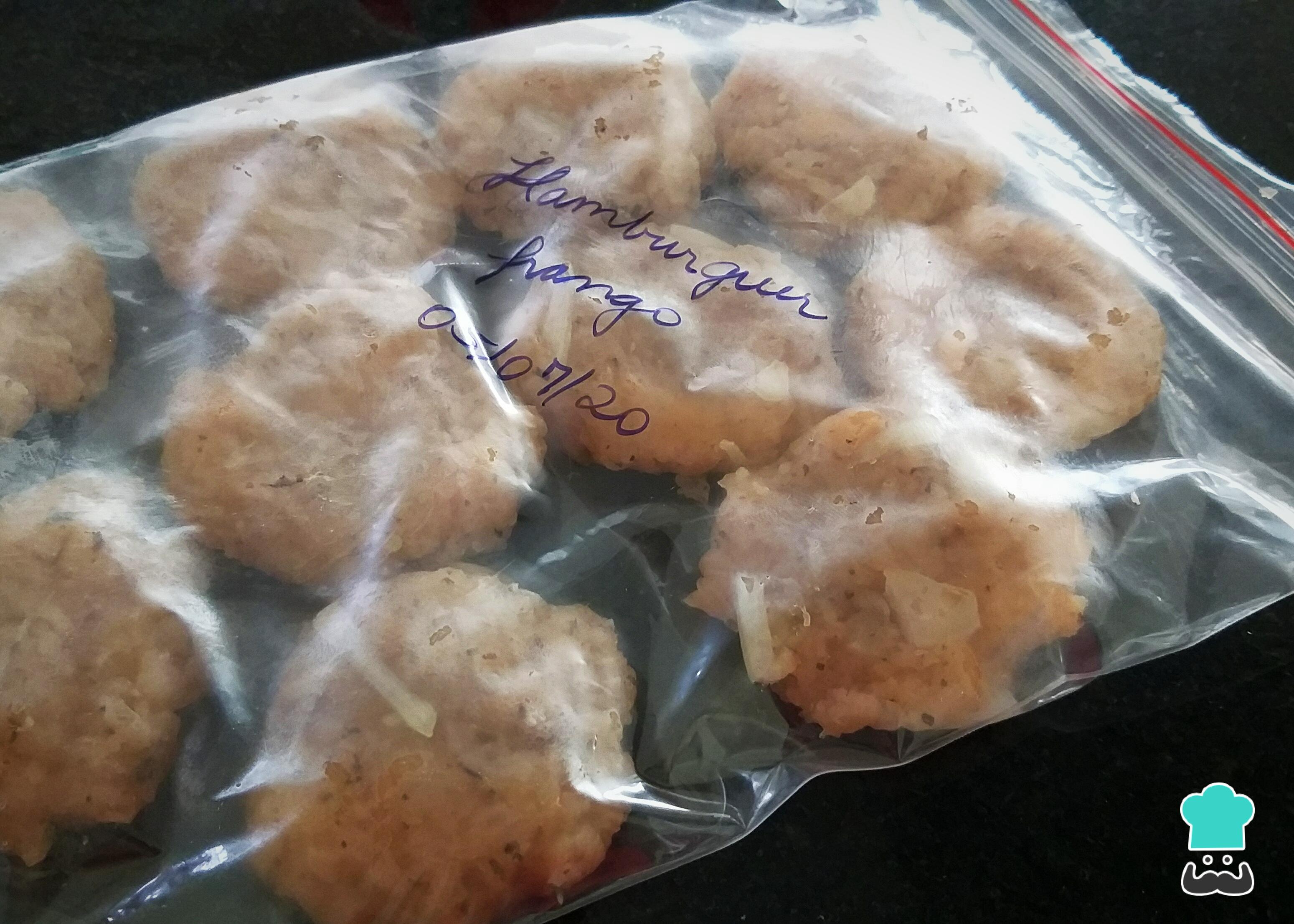 Retire do freezer, guarde os hambúrgueres em sacos plásticos e retorne ao freezer para armazenar, desta vez, por até 3 meses.