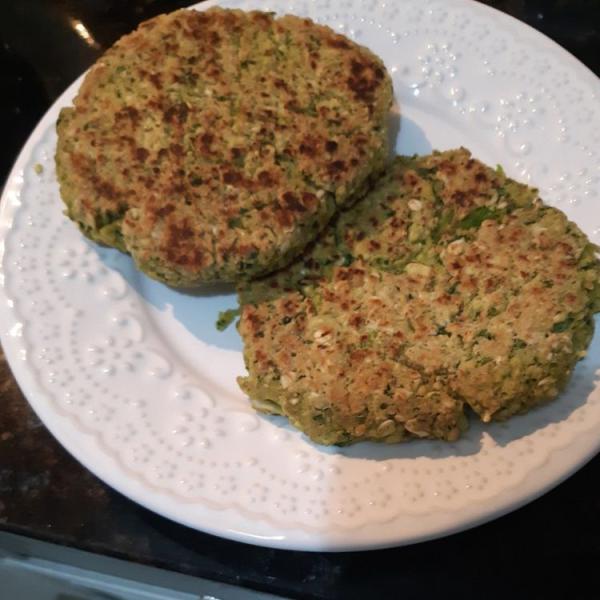Pegue em uma porção da massa, modele em forma de bolinha e achate entre as mãos, para ficar parecendo um hambúrguer. Doure numa frigideira untada com o azeite ou no forno a 200ºC.