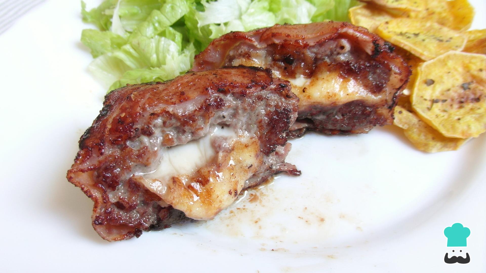 Receita de Hambúrguer recheado com queijo e bacon