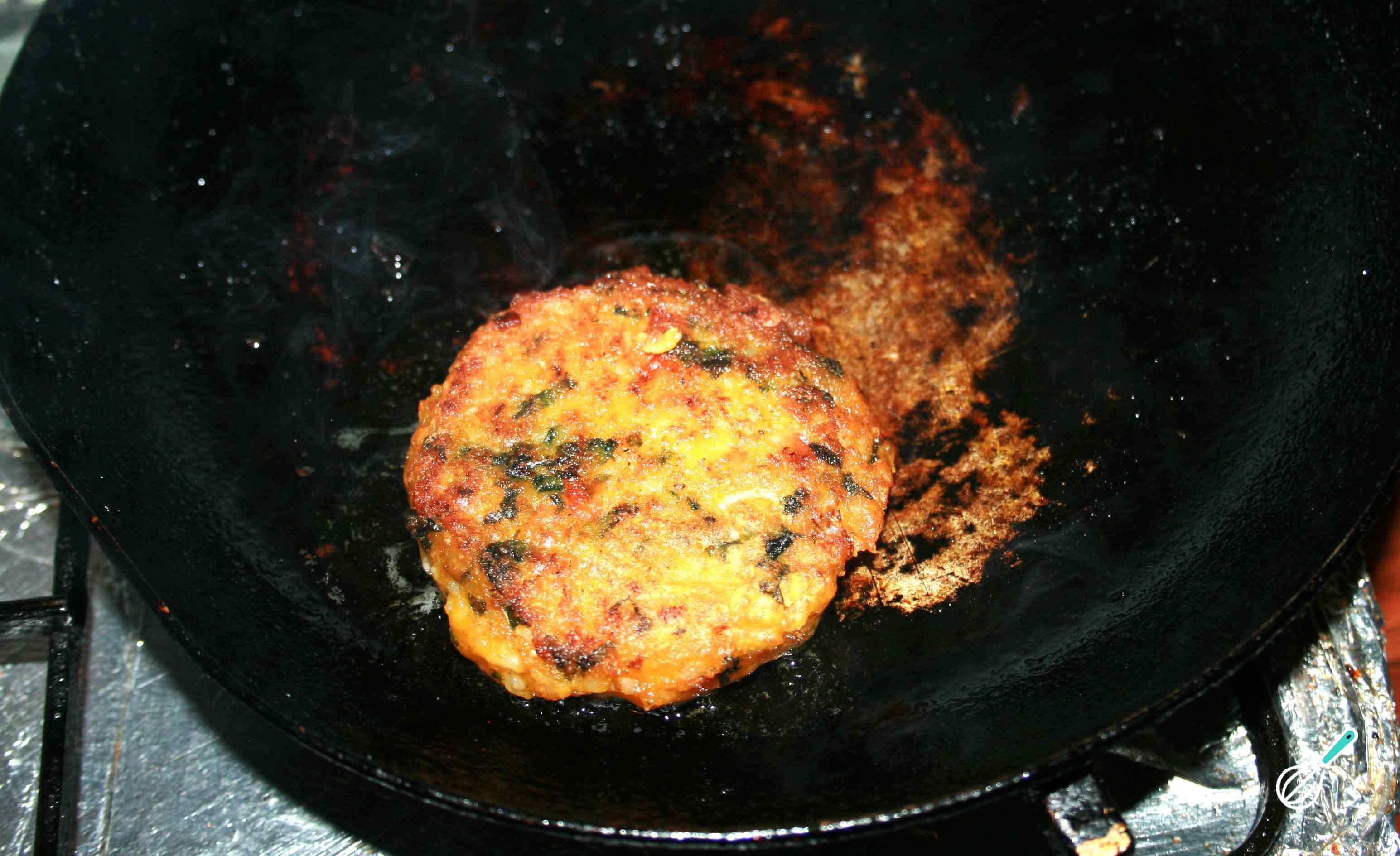 Forme várias bolas de massa e espalme, para dar a forma de hambúrguer.