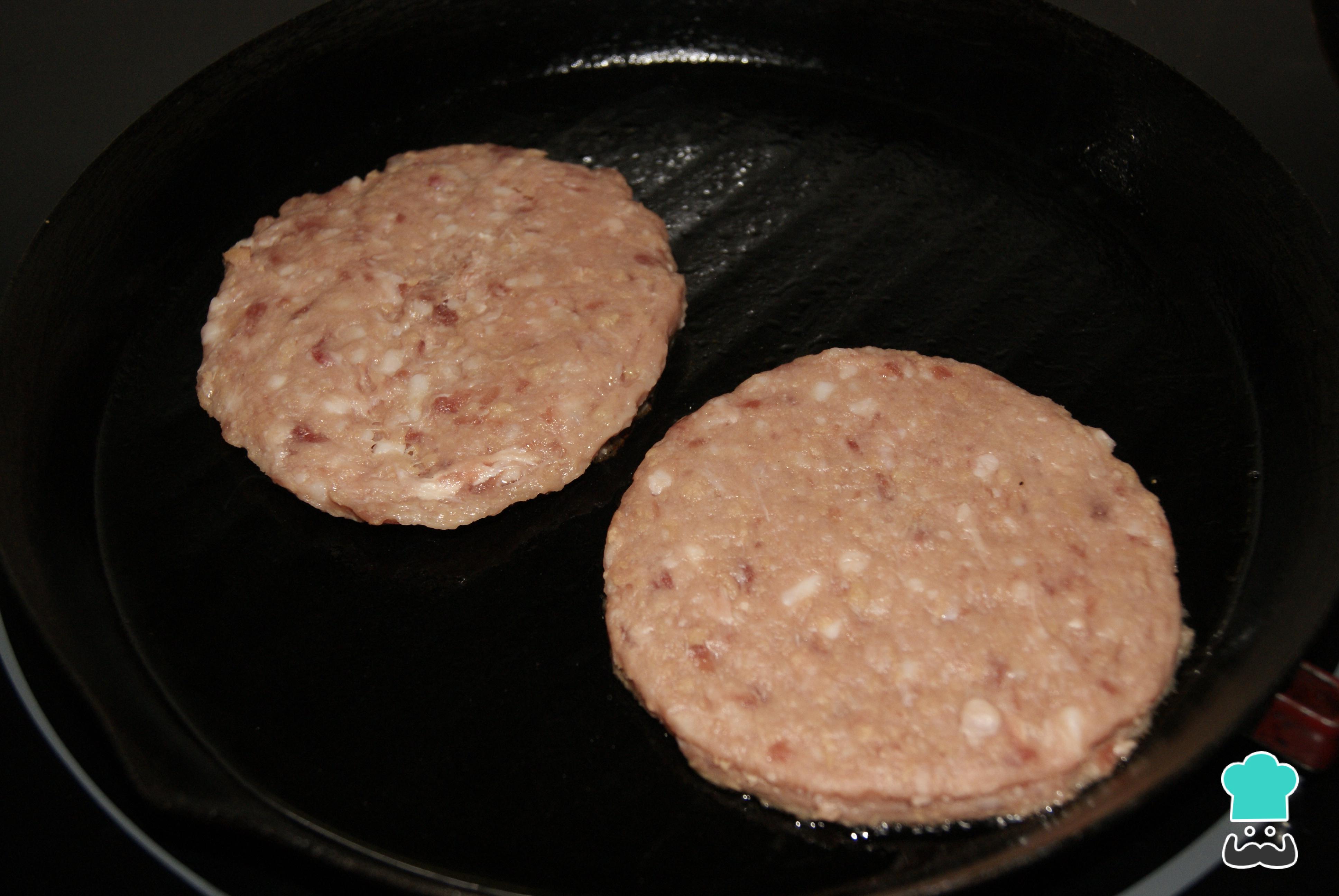 Aproveite também para temperar os hambúrgueres com sal e pimenta e cozinhar em uma grelha, de um lado e do outro, até que estejam dourados.