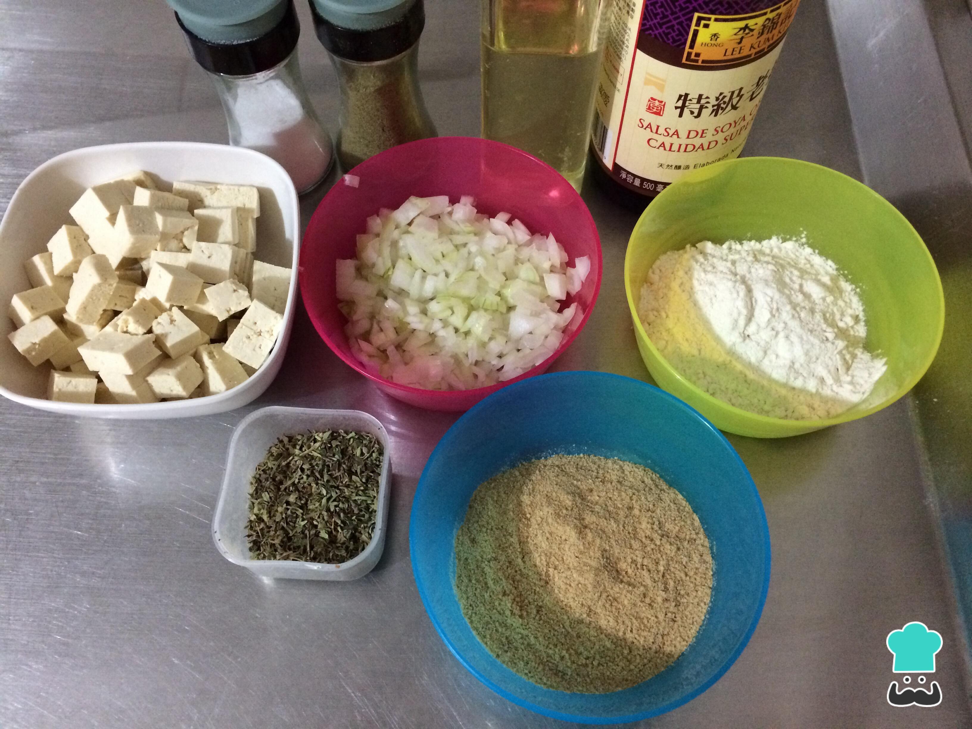 Para fazer os hambúrgueres de tofu, comece por reunir os ingredientes.