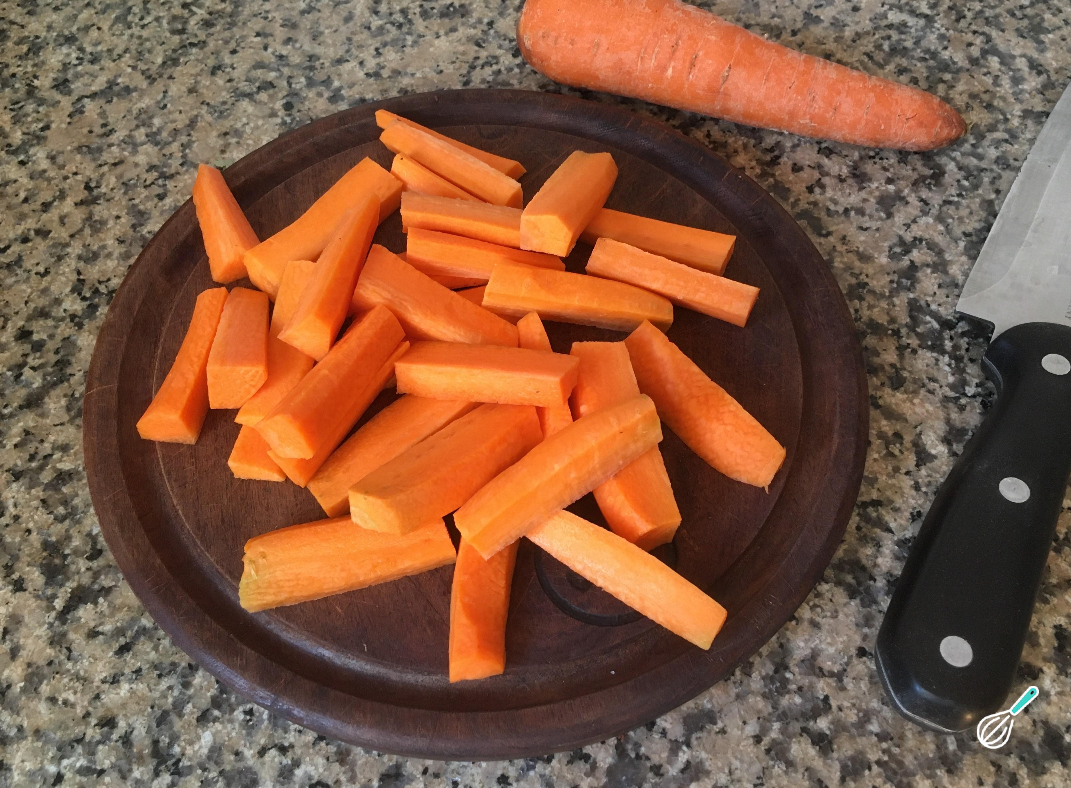 Asse por 30 minutos. Após esse tempo, coloque o alho cortado ao meio e cozinhe por mais 10 minutos. Retire a cenoura do forno quando estiver macia e deixe esfriar.
