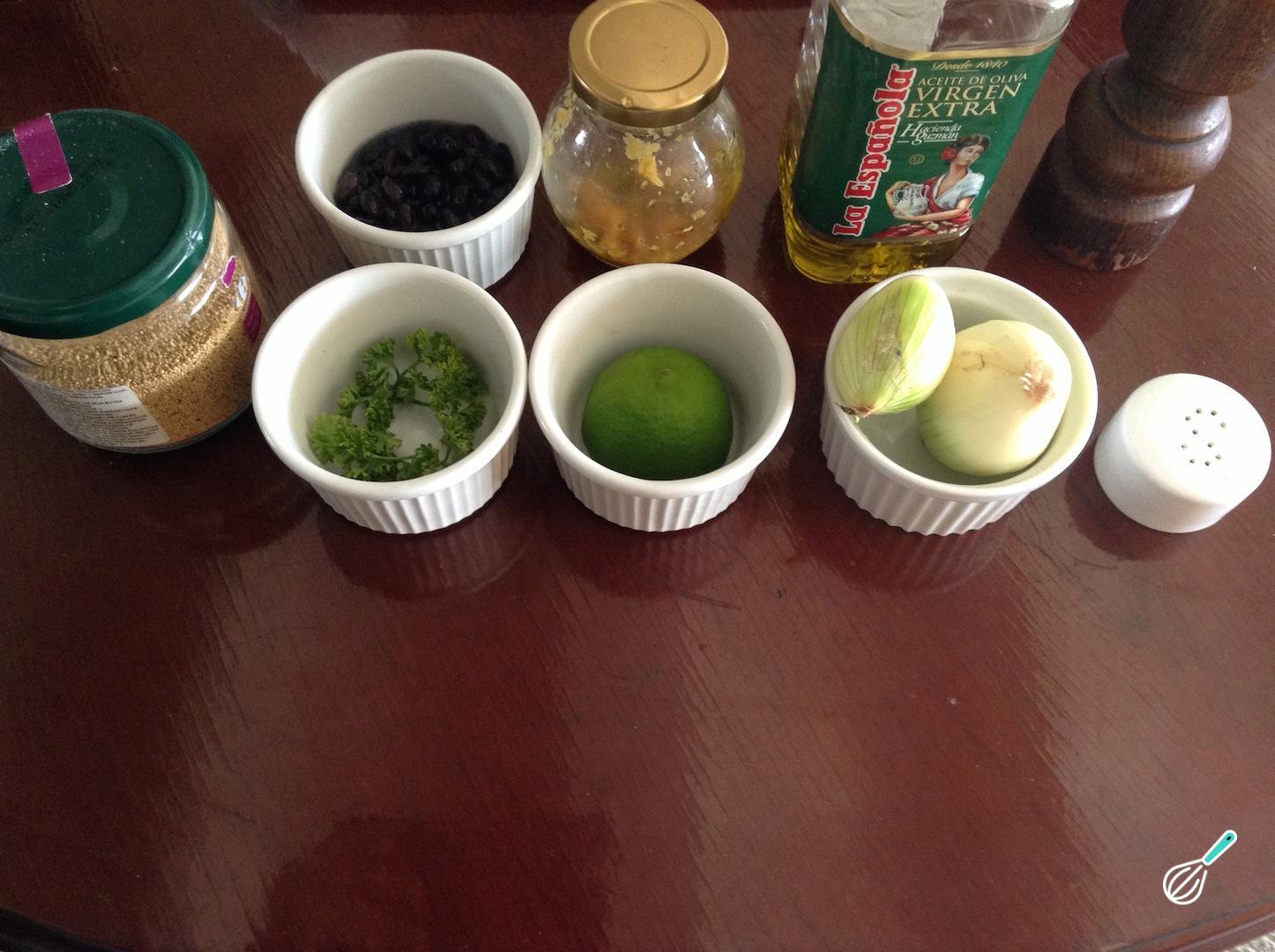 O primeiro passo para preparar esse homus de feijão pretoé reunir todos os ingredientes necessários.