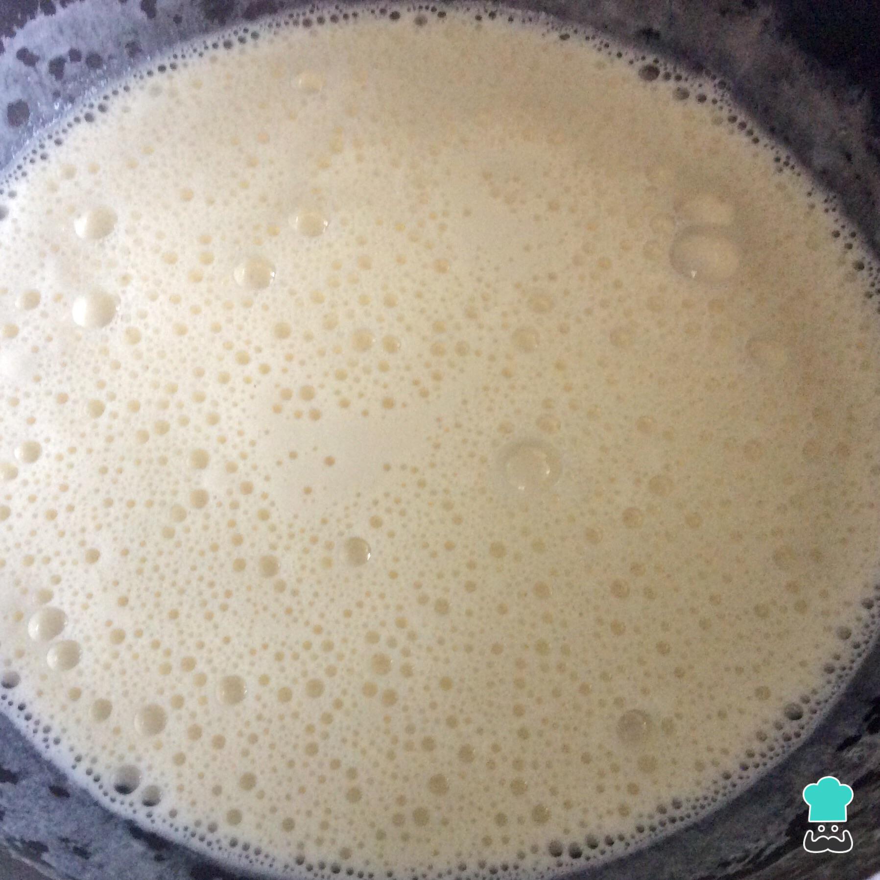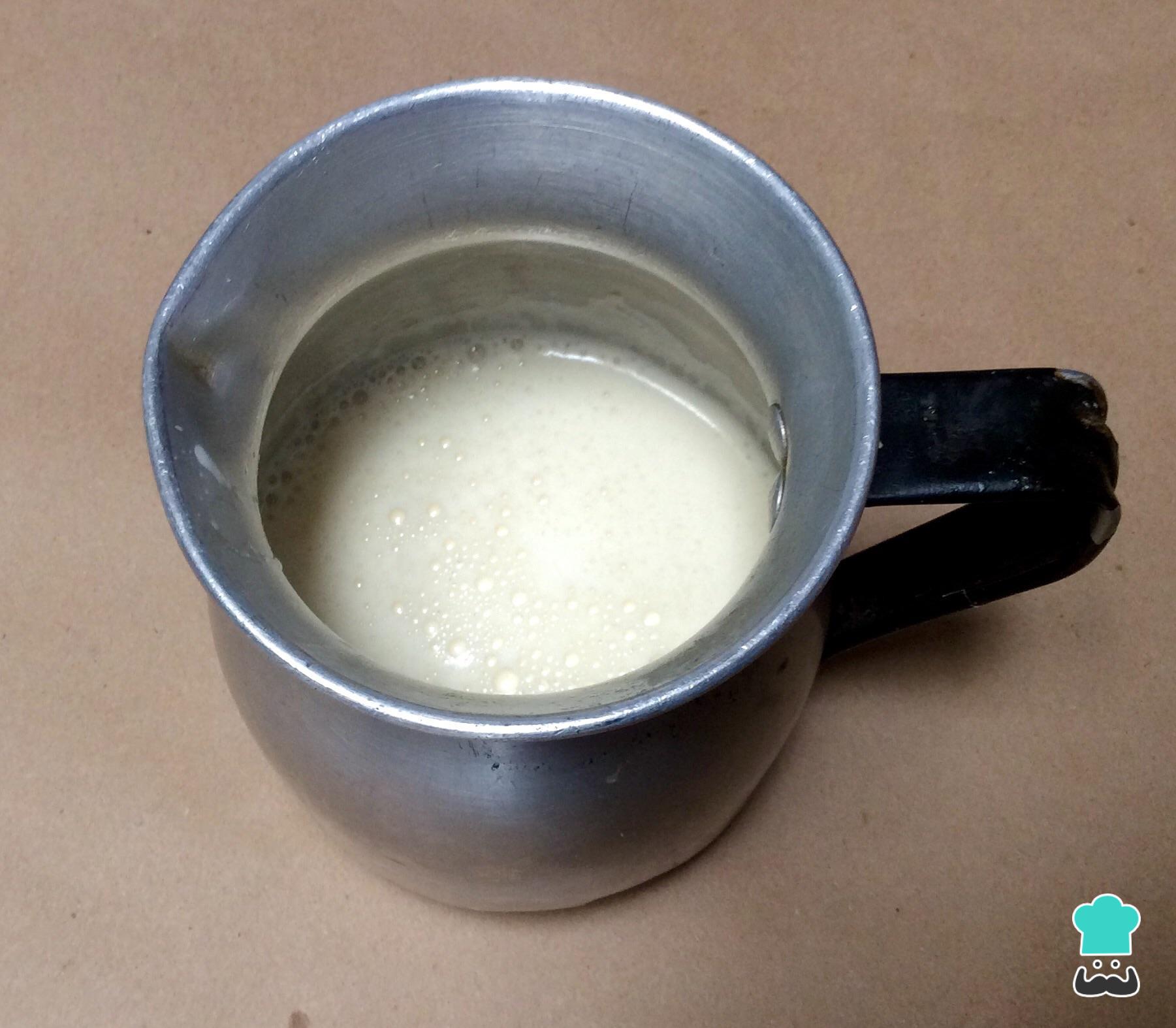 O passo seguinte da ilha flutuante é leve ao fogo médio uma panela com o leite e a baunilha. Quando estiver quente, porém sem ferver, acrescente o creme de gemas e açúcar enquanto mexe.