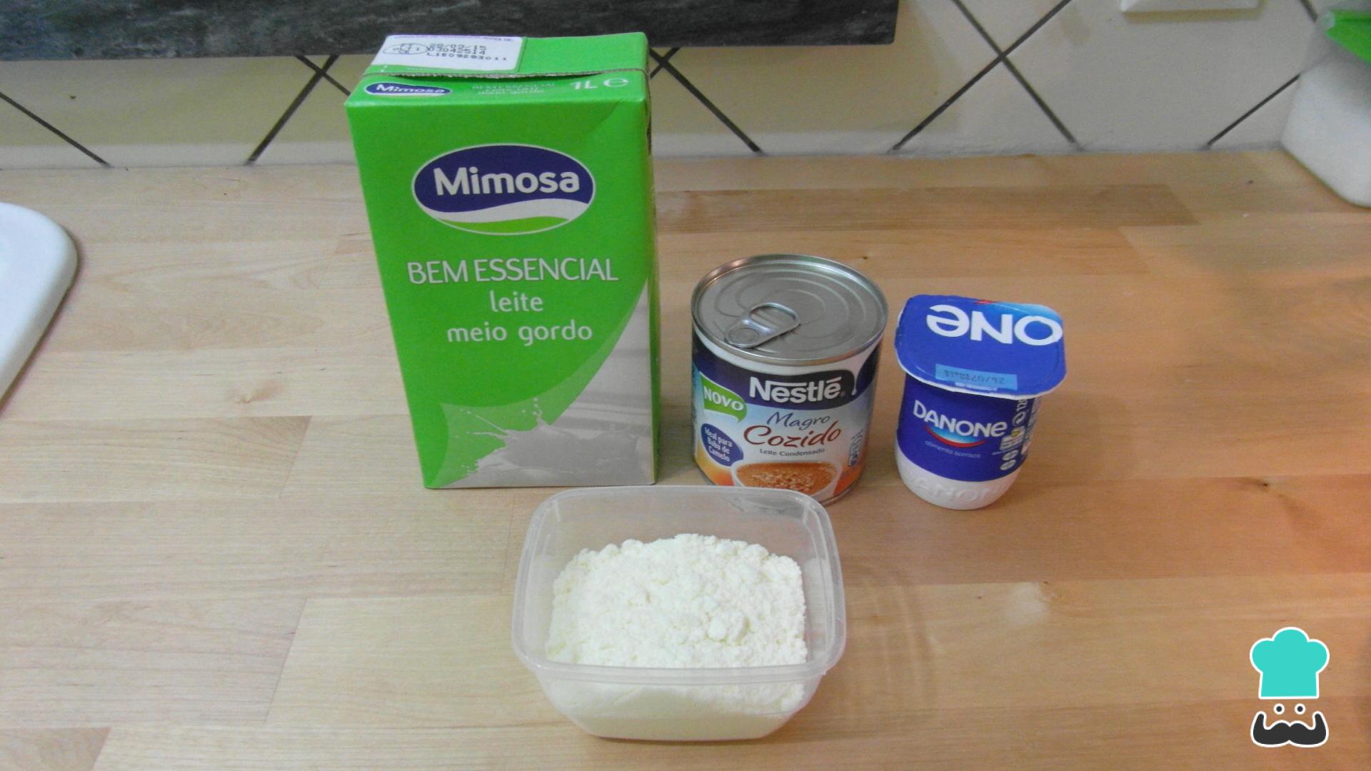 O primeiro passo desta receita de iogurte caseiro de doce de leite é reunir todos os ingredientes.