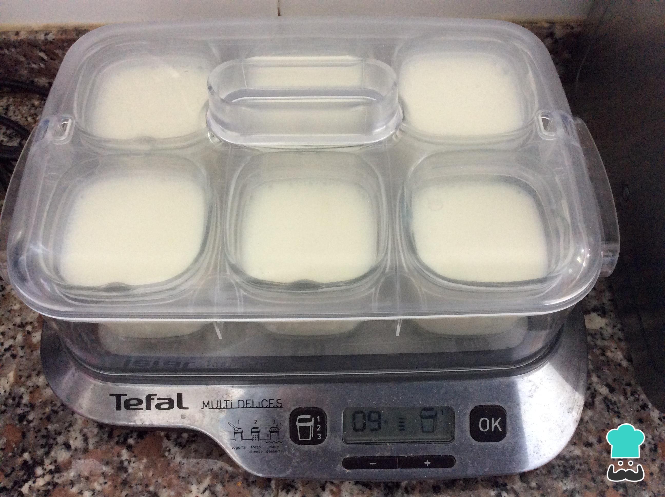 Quando a iogurteira terminar, tampe os iogurtes sem lactose e deixe-os no frigorífico por um mínimo de quatro horas.